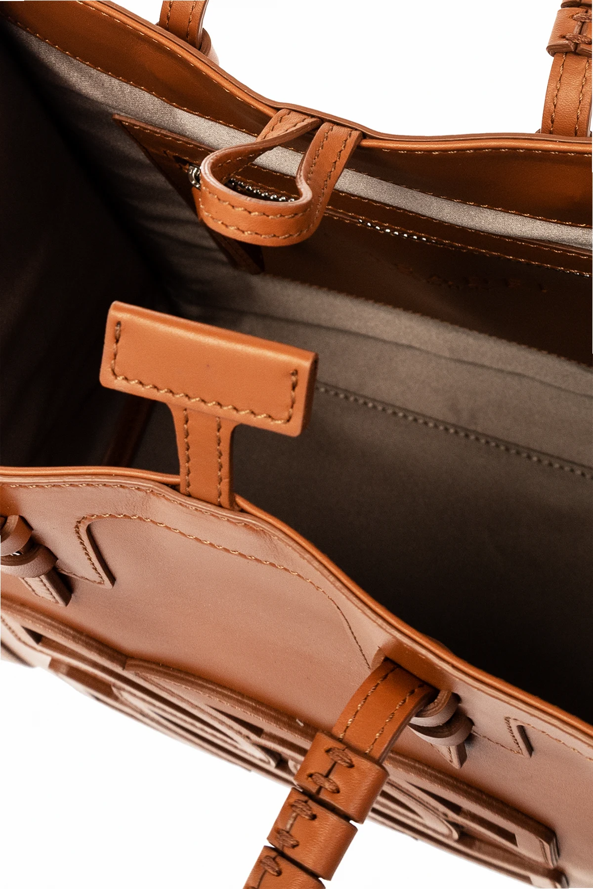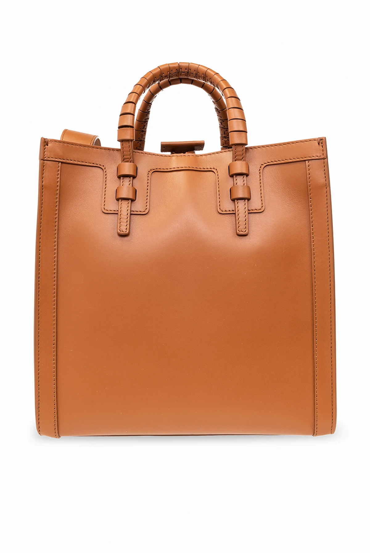 Brown ‘Beauriva’ shopper bag from Casadei. Crafted from calf leather, this design secures with a toggle fastener and features a logo patch on the front. It is complete with a detachable and adjustable shoulder strap, two handles with braided detailing, silver-tone metal hardware and one internal compartment with a zip pocket.