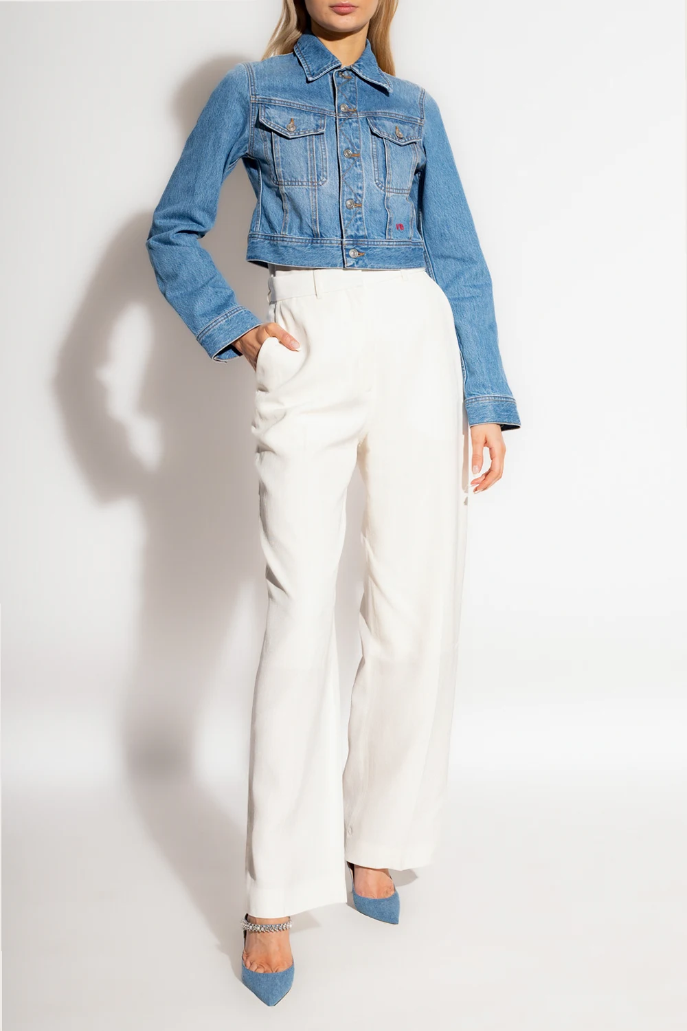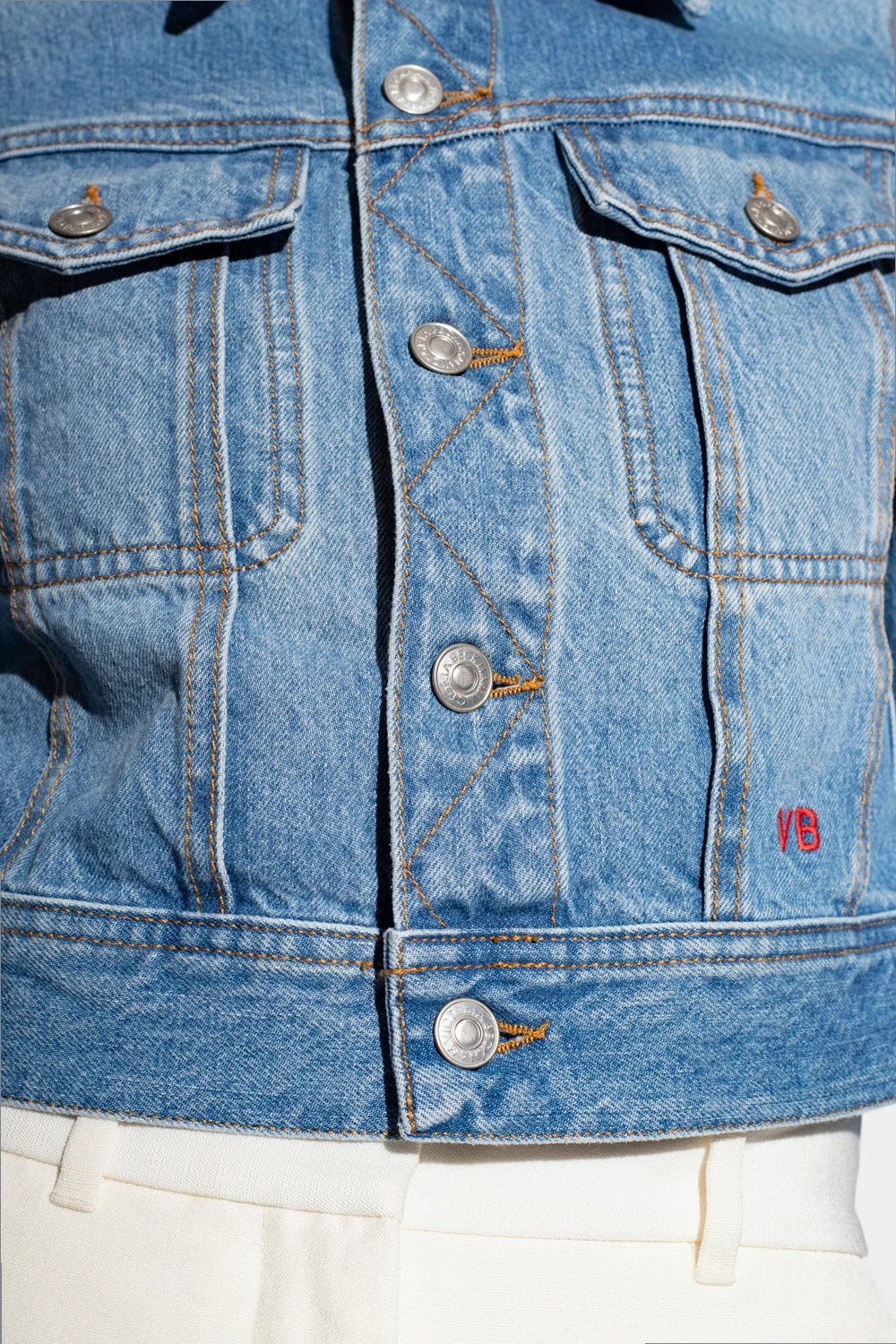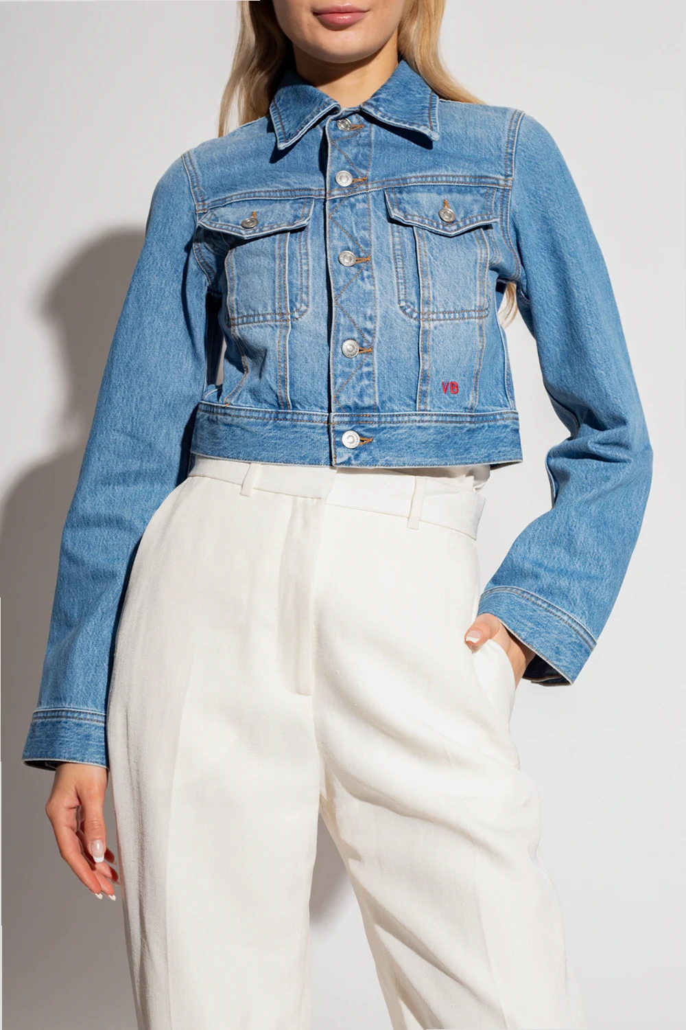 Blue denim jacket from Victoria Beckham. Made of cotton, this design features button fastenings, red logo embroidery, two flap pockets and long sleeves with buttoned cuffs.