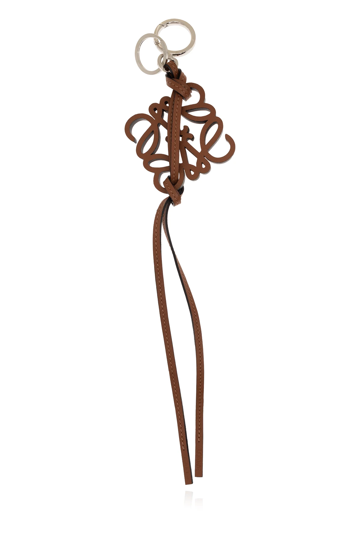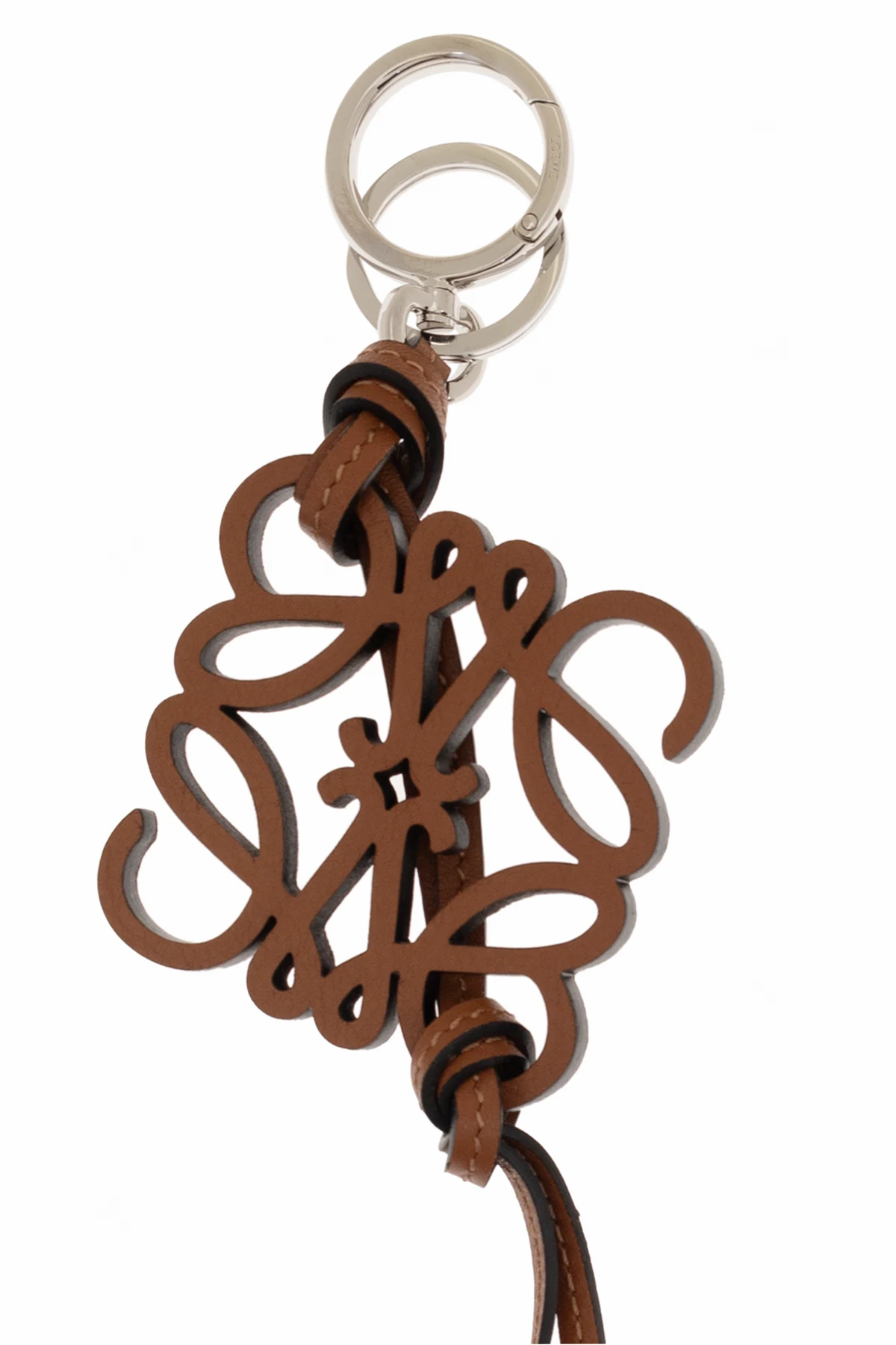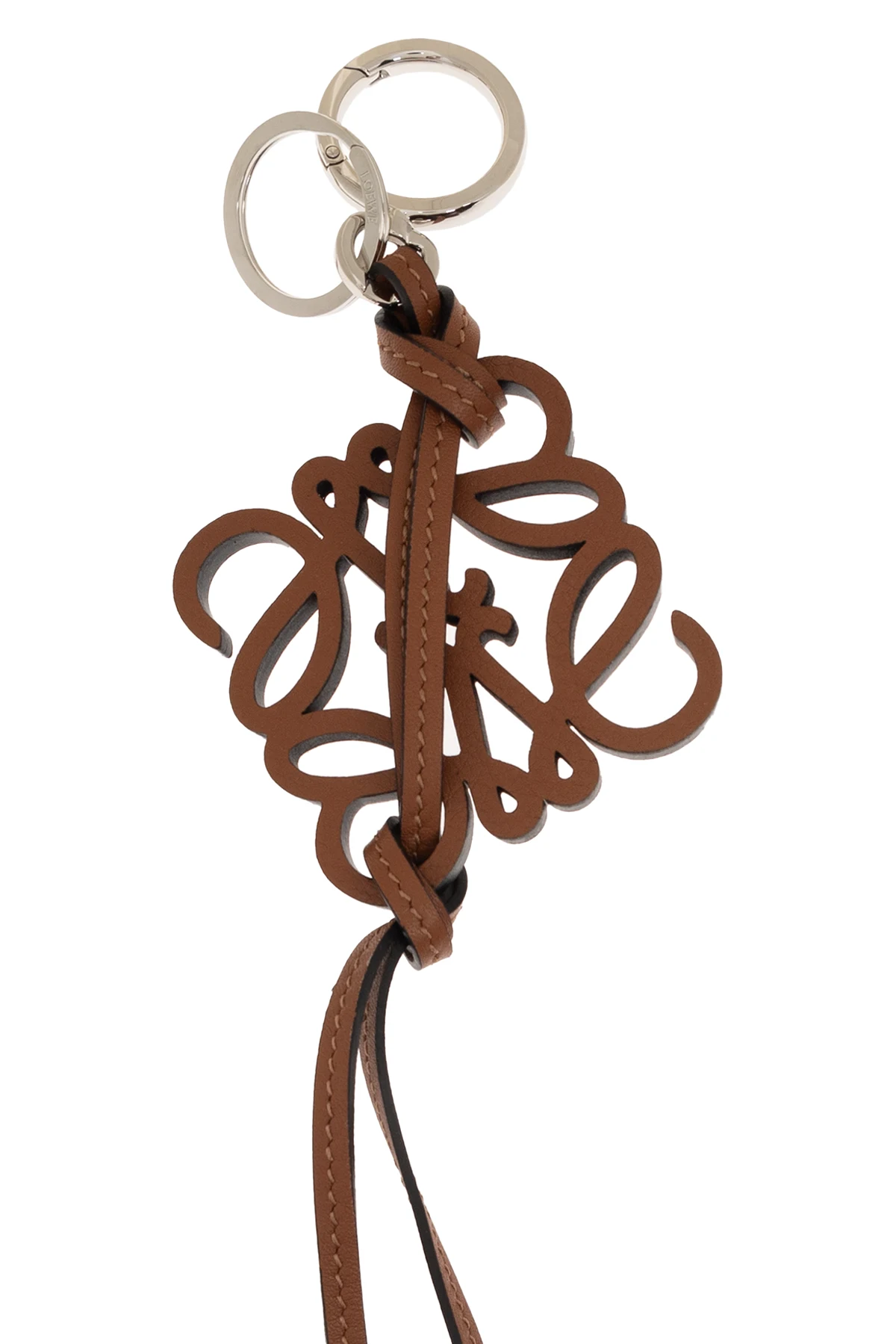 Silver-tone keyring with a brown logo pendant from Loewe. Made of brass.