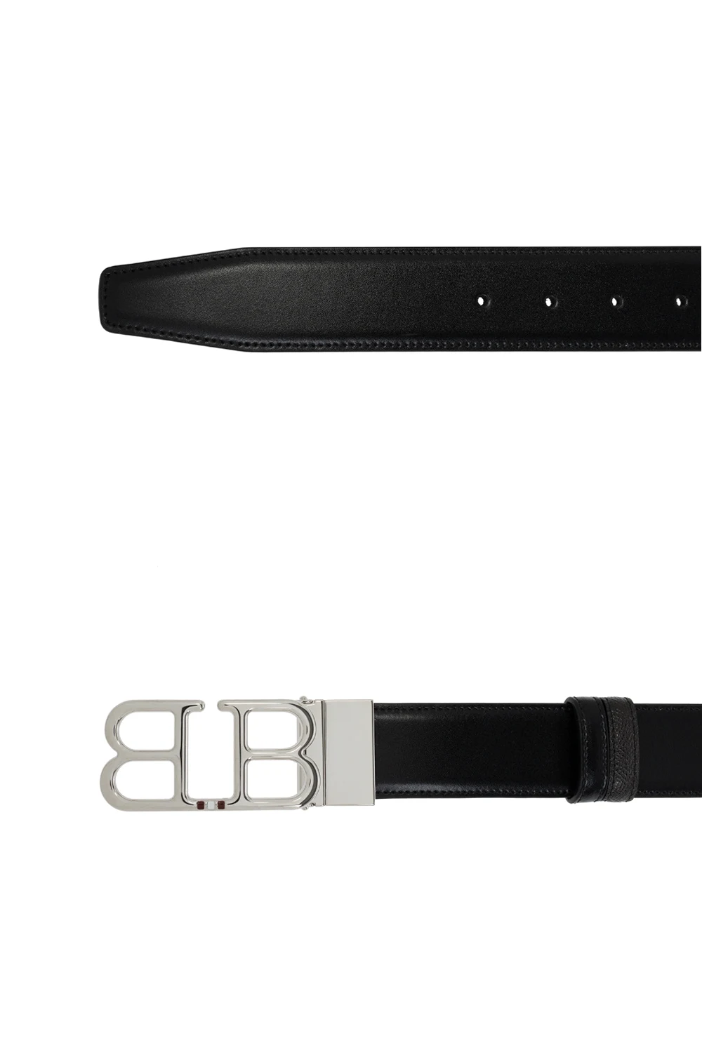 Black ‘Britt’ belt from Bally. Crafted from textured bovine leather, this design features a silver-tone metal buckle and an embossed logo in silver-tone.