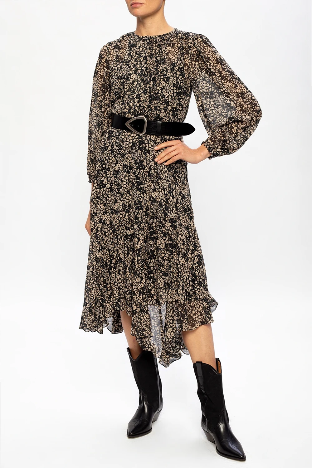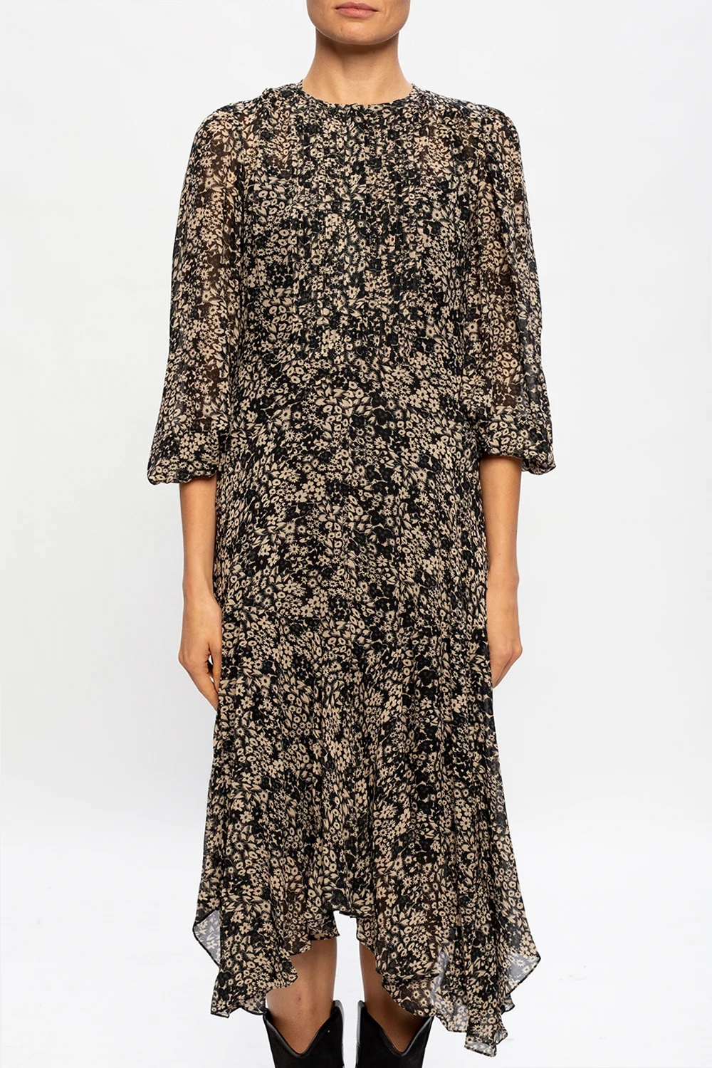Black dress from Isabel Marant Étoile. Fastened with buttons, this long sleeve design is decorated with a floral print in cream.