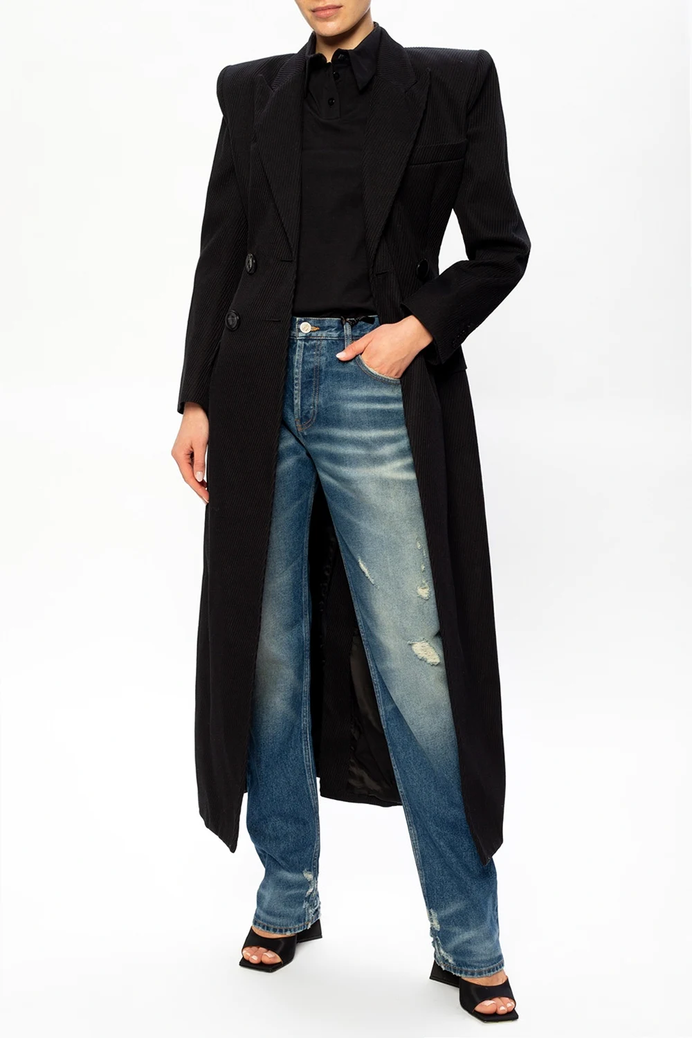Black polo shirt from The Attico. Crafted from cotton, this design features a black logo embroidery and padded shoulders.