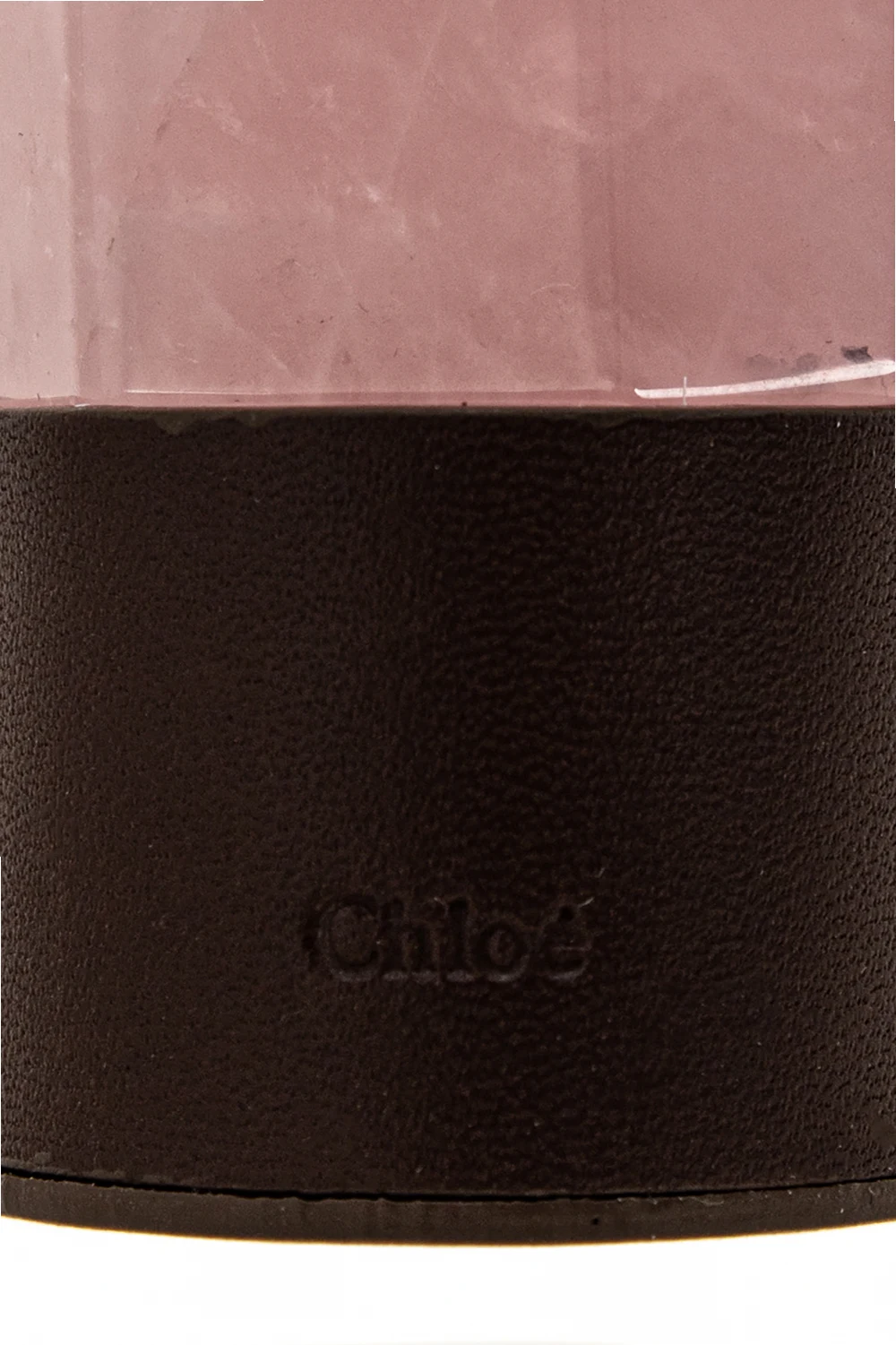 Brown and pink ‘Jemma’ decorative object from Chloé. Made of leather and brass, this item features a rose quartz and metal logo-engraved underside in light gold-tone. Can be showcased as a piece of art or used as a paperweight.