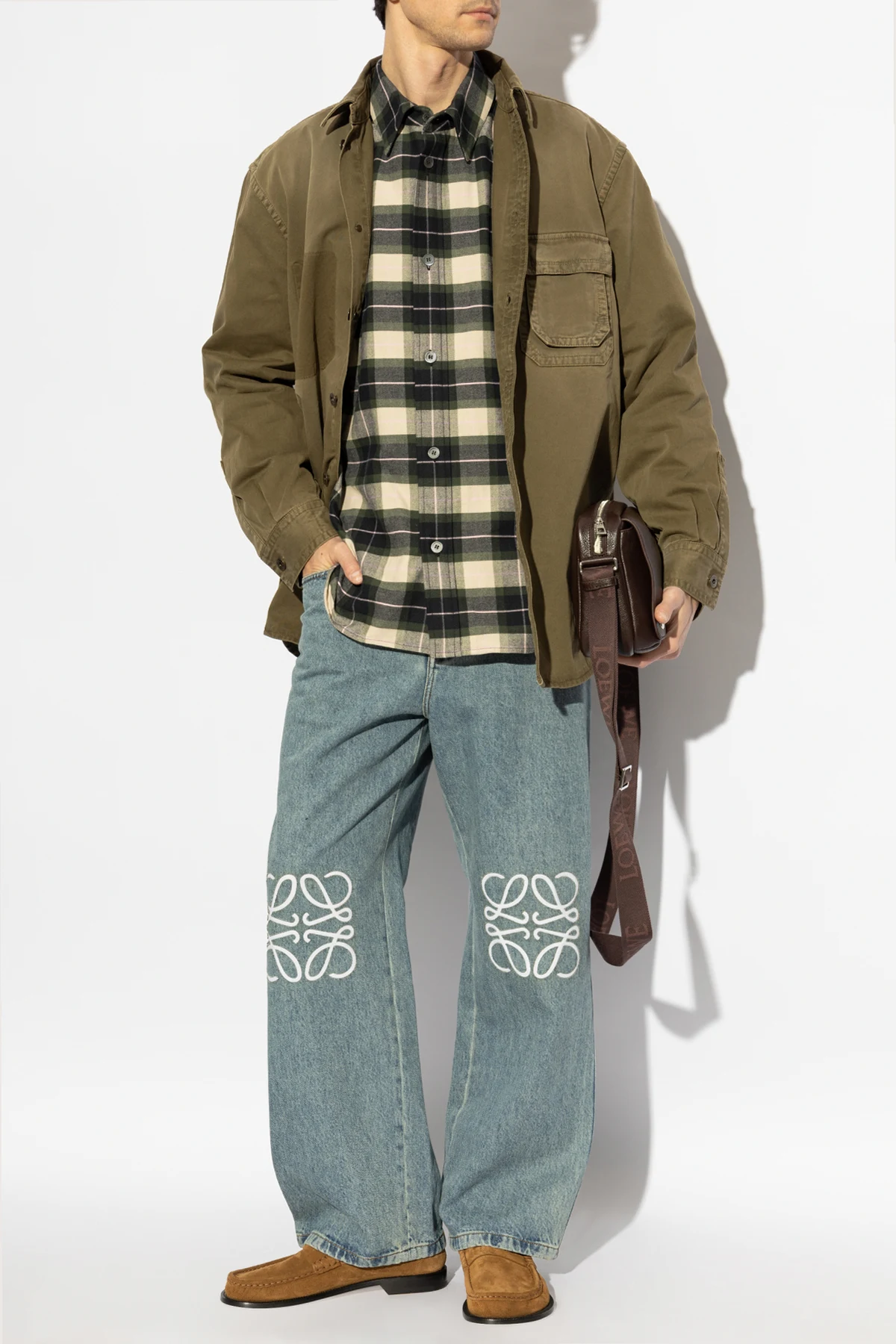 Wir präsentieren das Hemd mit Muster von der renommierten Marke Loewe, deren Geschichte bis ins 19. Jahrhundert zurückreicht. Dieses Design, inspiriert vom spanischen Geist, vereint Tradition und Moderne perfekt und schafft ein einzigartiges Element der Herrengarderobe.