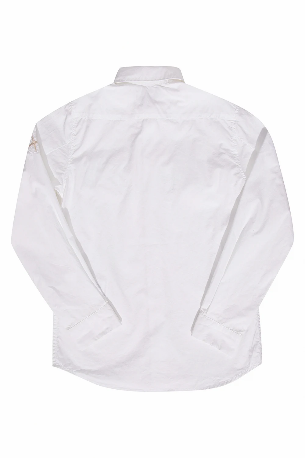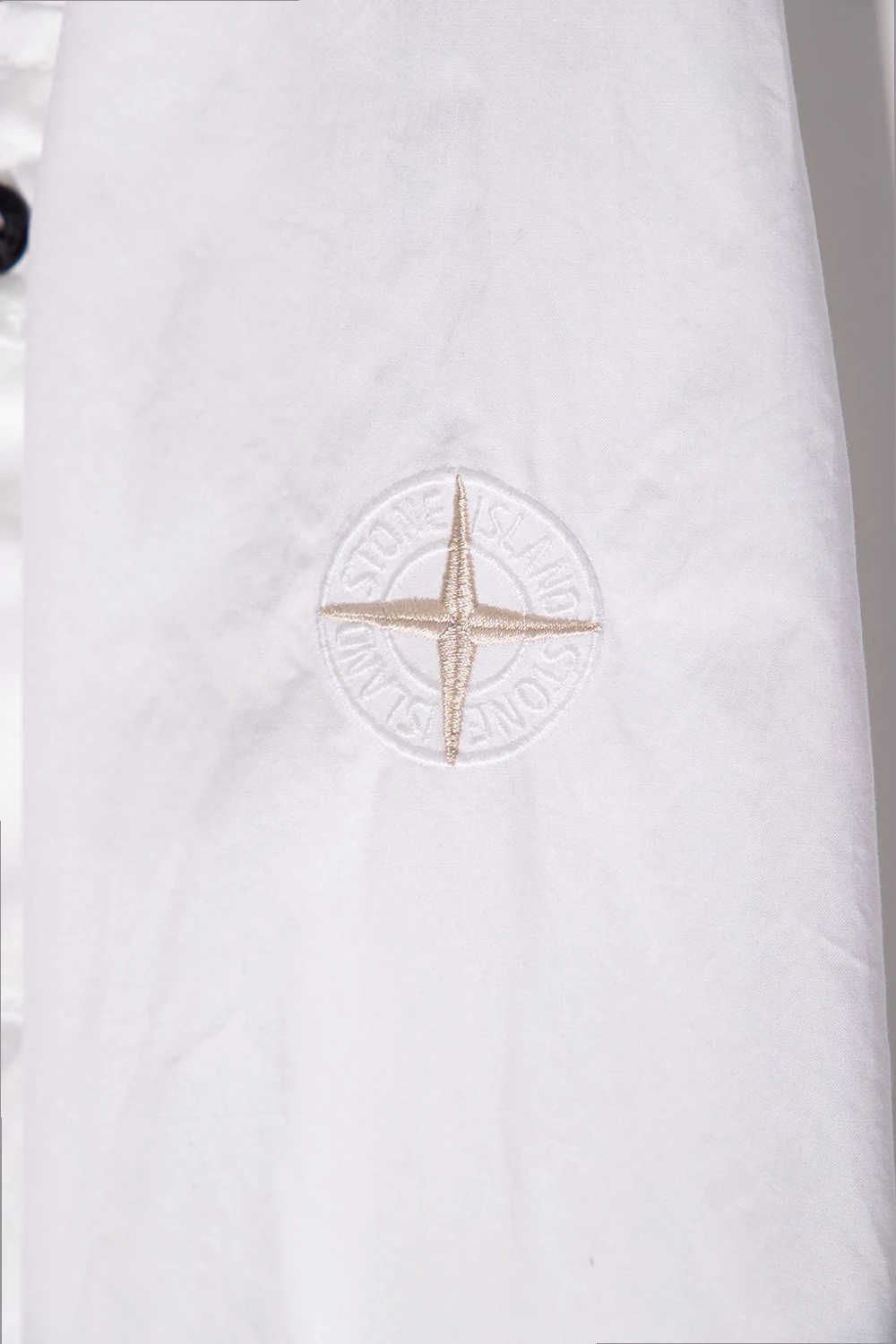 White shirt with a collar from Stone Island Kids. Made of cotton, this garment features black buttons, two buttoned pockets and a logo embroidered on one sleeve.