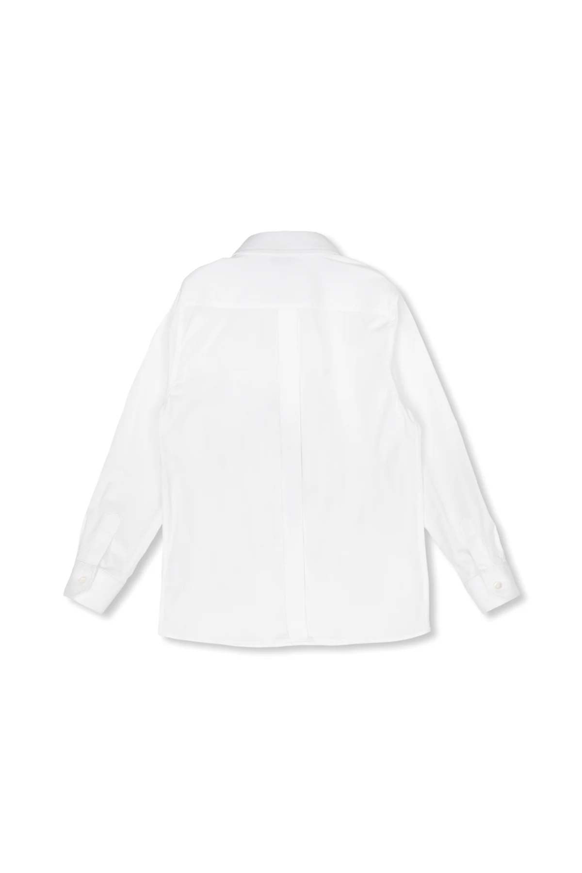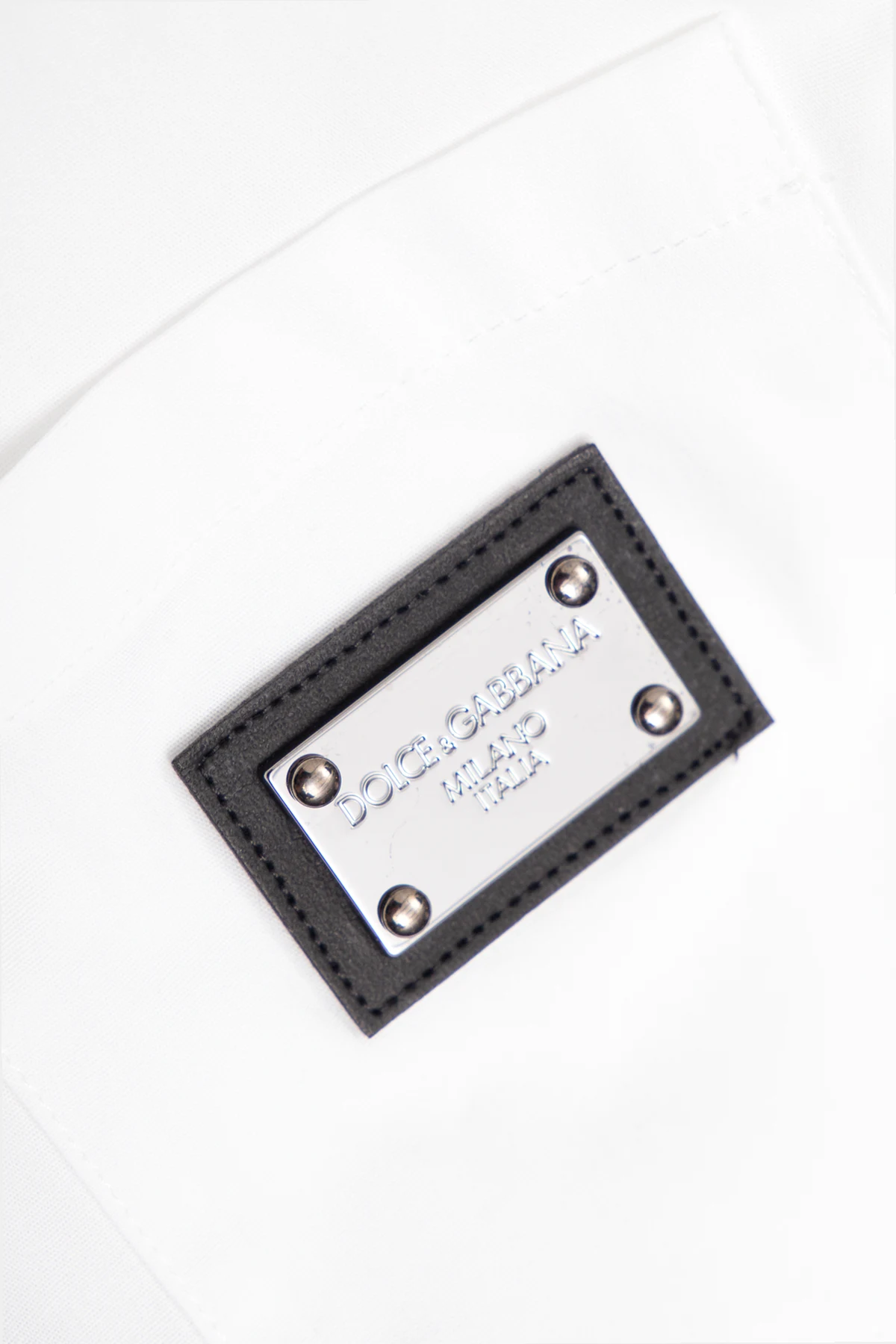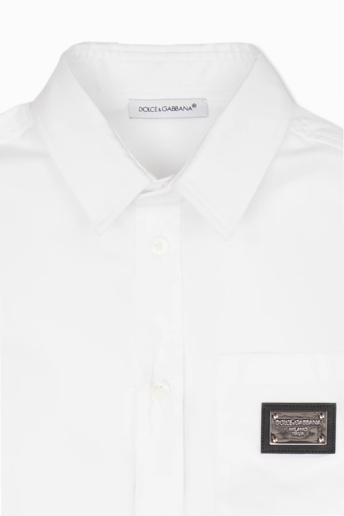 White shirt from Dolce & Gabbana Kids. Made of cotton, this style fastens with buttons and features a slip chest pocket accentuated with a logo-engraved application and long sleeves with button cuffs.