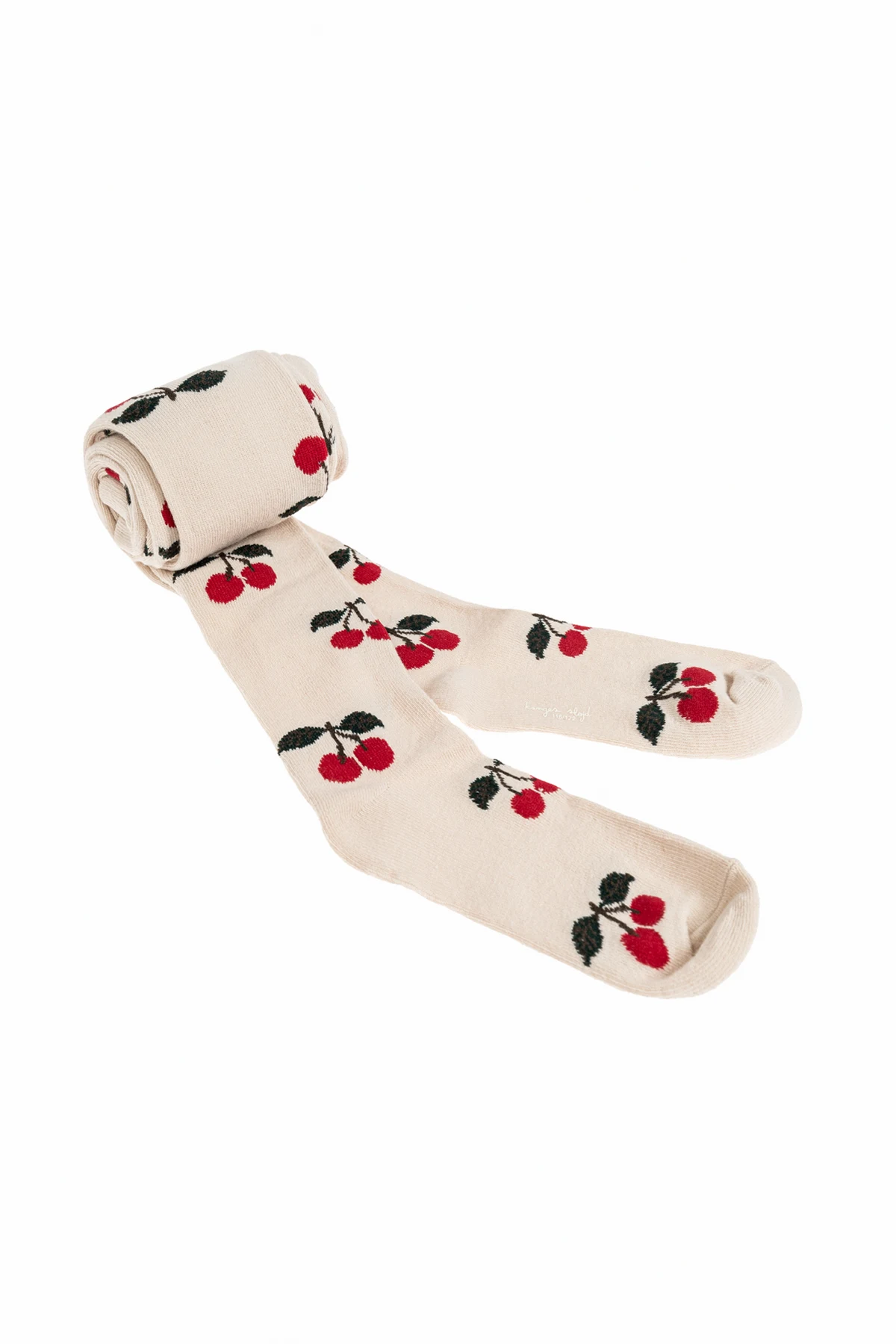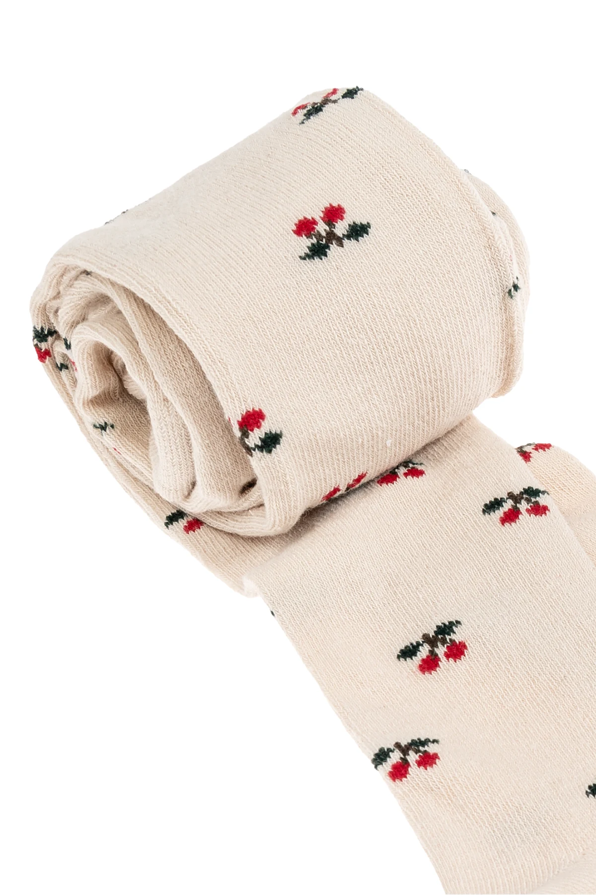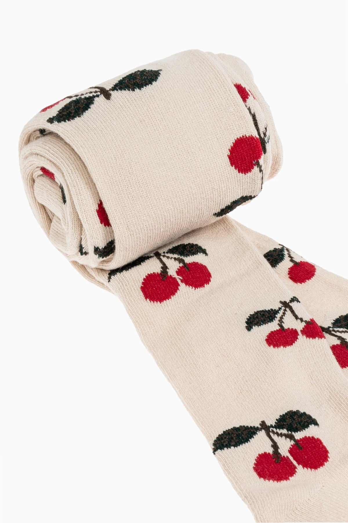 Besondere Aufmerksamkeit verdient die dezente cremefarbene Farbe, die eine hervorragende Basis für das Muster mit kleinen roten Kirschen mit grünen Blättern bildet. Ein Paar zeichnet sich durch ein feines und gleichmäßiges Muster aus, während das andere eine auffälligere Komposition von Kirschen in größeren Gruppen aufweist.