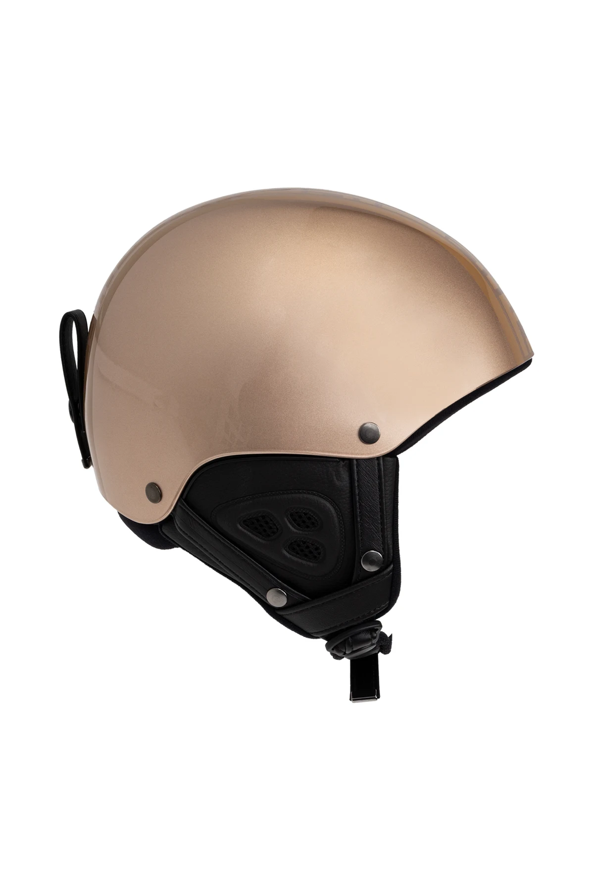 Die klassische, abgerundete Form des Helms harmoniert perfekt mit der eleganten, glänzenden Oberfläche aus hochwertigen Materialien - PVC, Kunststoff und Polyamid. Der schwarze Riemen mit Verschluss sowie die Belüftungsöffnungen an den Seiten sorgen für maximalen Tragekomfort, selbst an den intensivsten Tagen auf der Piste.