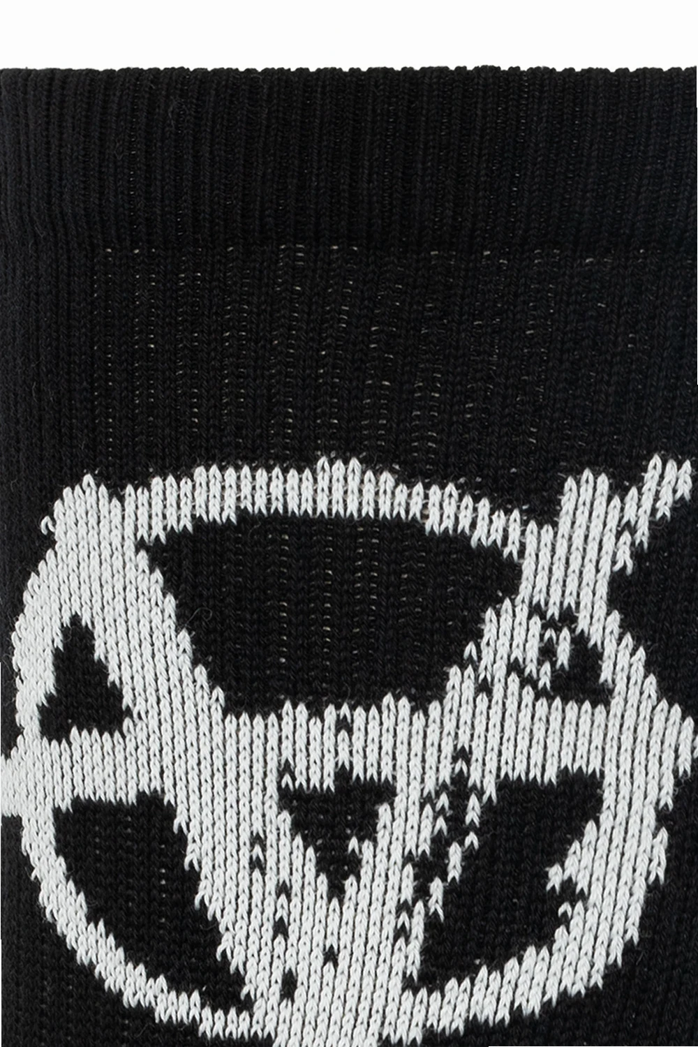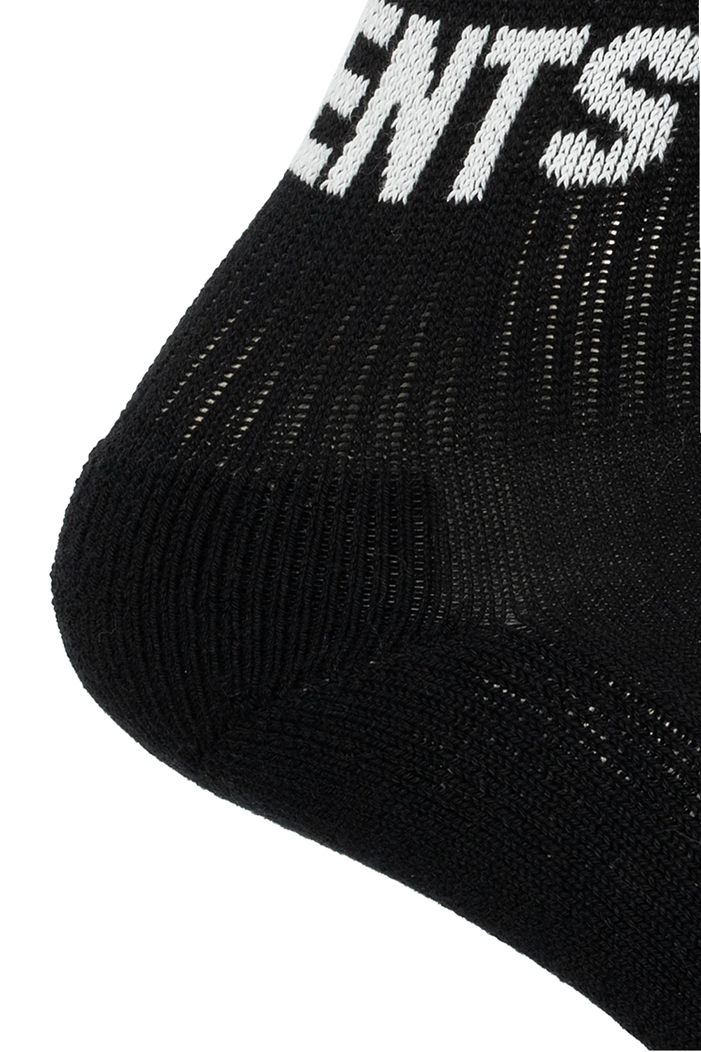 Black socks from VETEMENTS. Crafted from cotton, they showcase embroidered lettering in white.