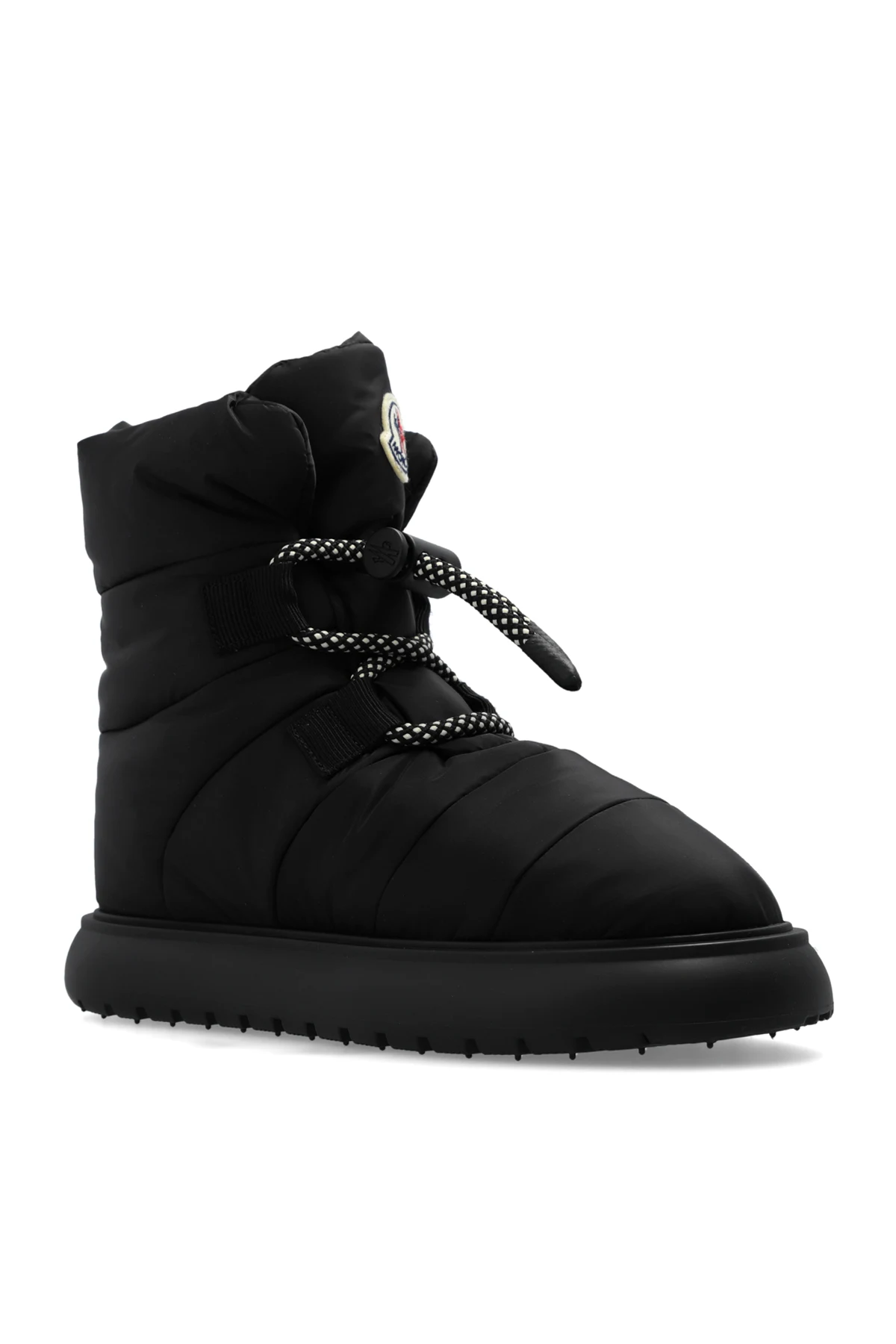 Sie sind aus wasserdichtem, synthetischem Material gefertigt, das effektiv vor Feuchtigkeit schützt, und das gefütterte Innenfutter sorgt für Tragekomfort auch an den kältesten Tagen. Die Schneestiefel sind mit zwei Klettverschlussriemen und einem zusätzlichen Frontgurt mit der Aufschrift „Moncler“ ausgestattet, was die Anpassung und Sicherung des Stiefels erleichtert.