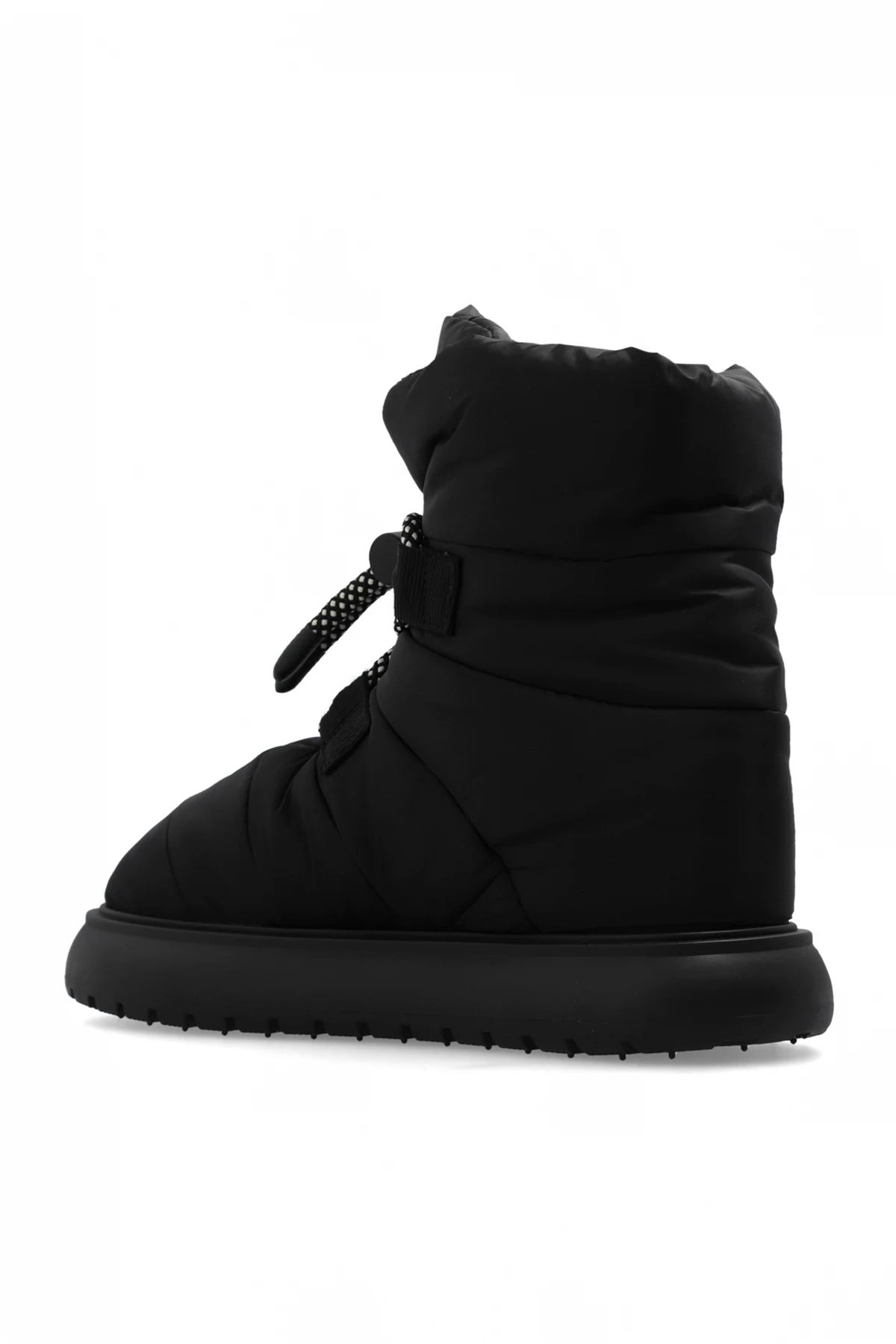 Wir präsentieren die Schneestiefel ‘Gaia Pull’ von der renommierten Marke Moncler, die raffinierten Stil mit außergewöhnlicher Funktionalität verbinden. Diese exklusiven Schneestiefel haben eine klassische, abgerundete Form mit einem hohen Schaft, der mit einer eleganten, gesteppten Struktur verziert ist und ihnen ein leichtes, bauschiges Aussehen verleiht.