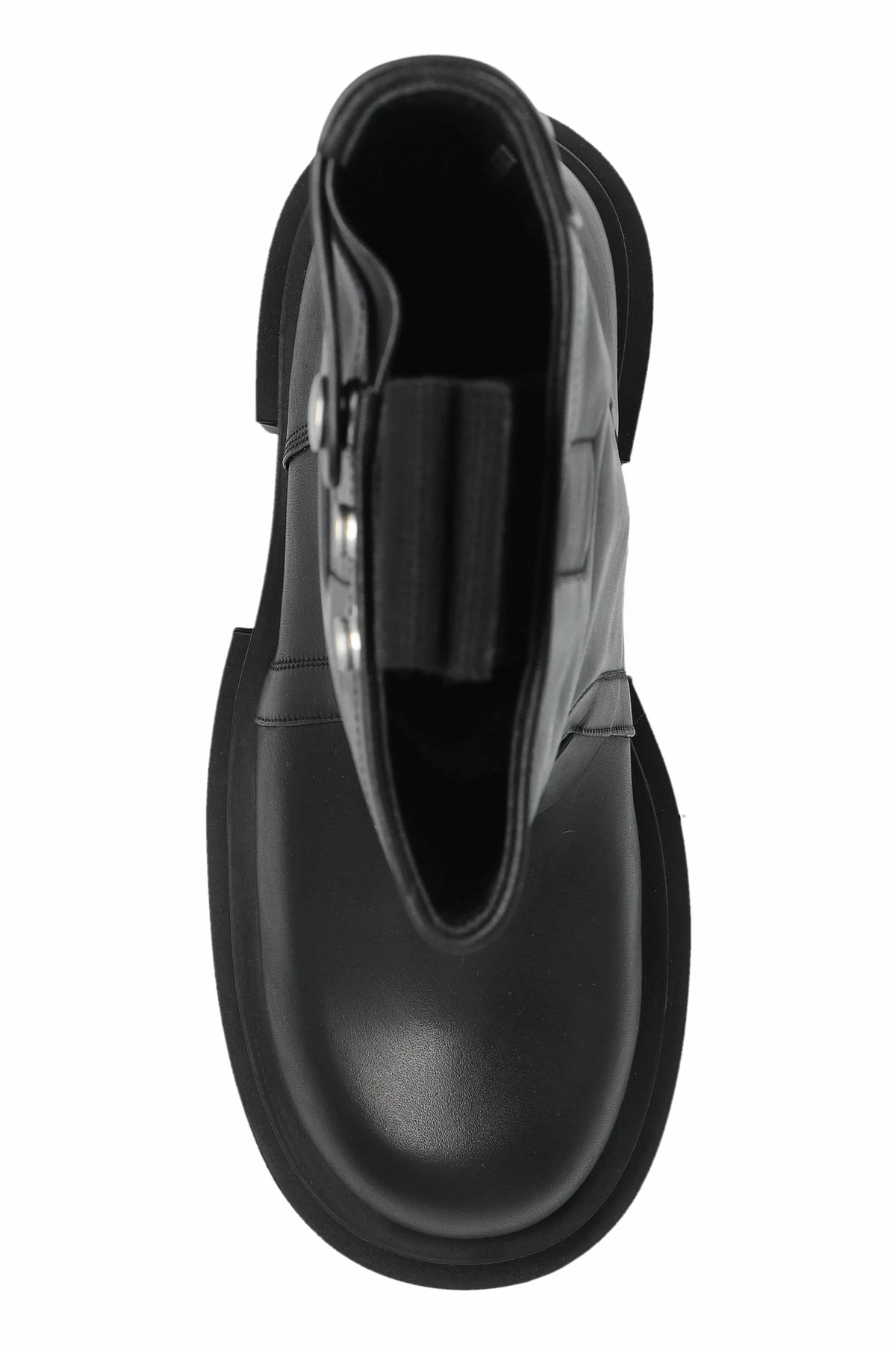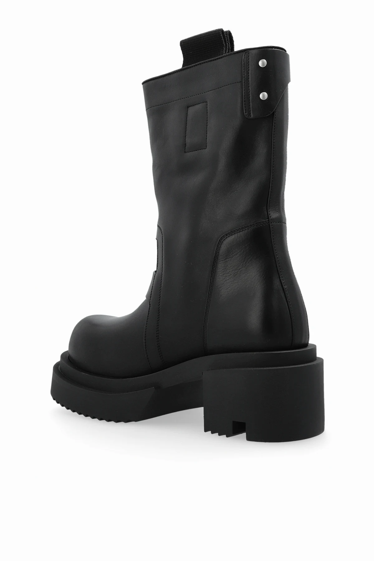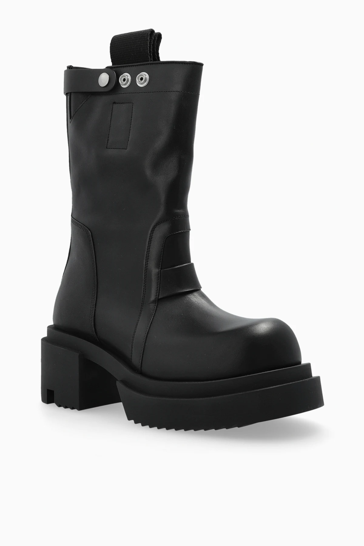 Entdecken Sie den einzigartigen Charme der Lederstiefel Pull On Bogun vom renommierten Designer Rick Owens , die die Quintessenz von Eleganz und Avantgarde darstellen. Gefertigt aus hochwertigem schwarzen Leder, zeichnen sich diese Stiefel durch eine solide Konstruktion mit einer dicken Gummisohle aus, die hervorragenden Halt und Stabilität bietet.