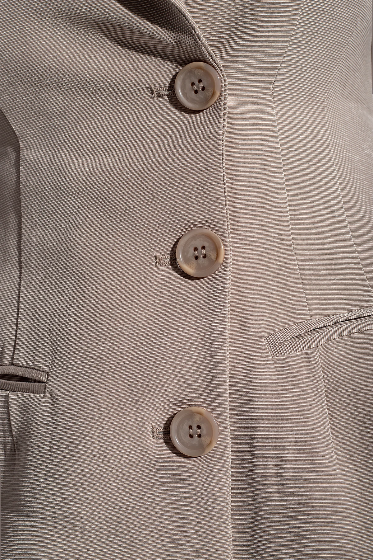 Beige ‘DaniGZ’ dress from Gestuz. Fastened with buttons, this style fastens with buttons on the front and features a single back vent with lace-up detailing, peak lapels, padded shoulders and long sleeves with slits.