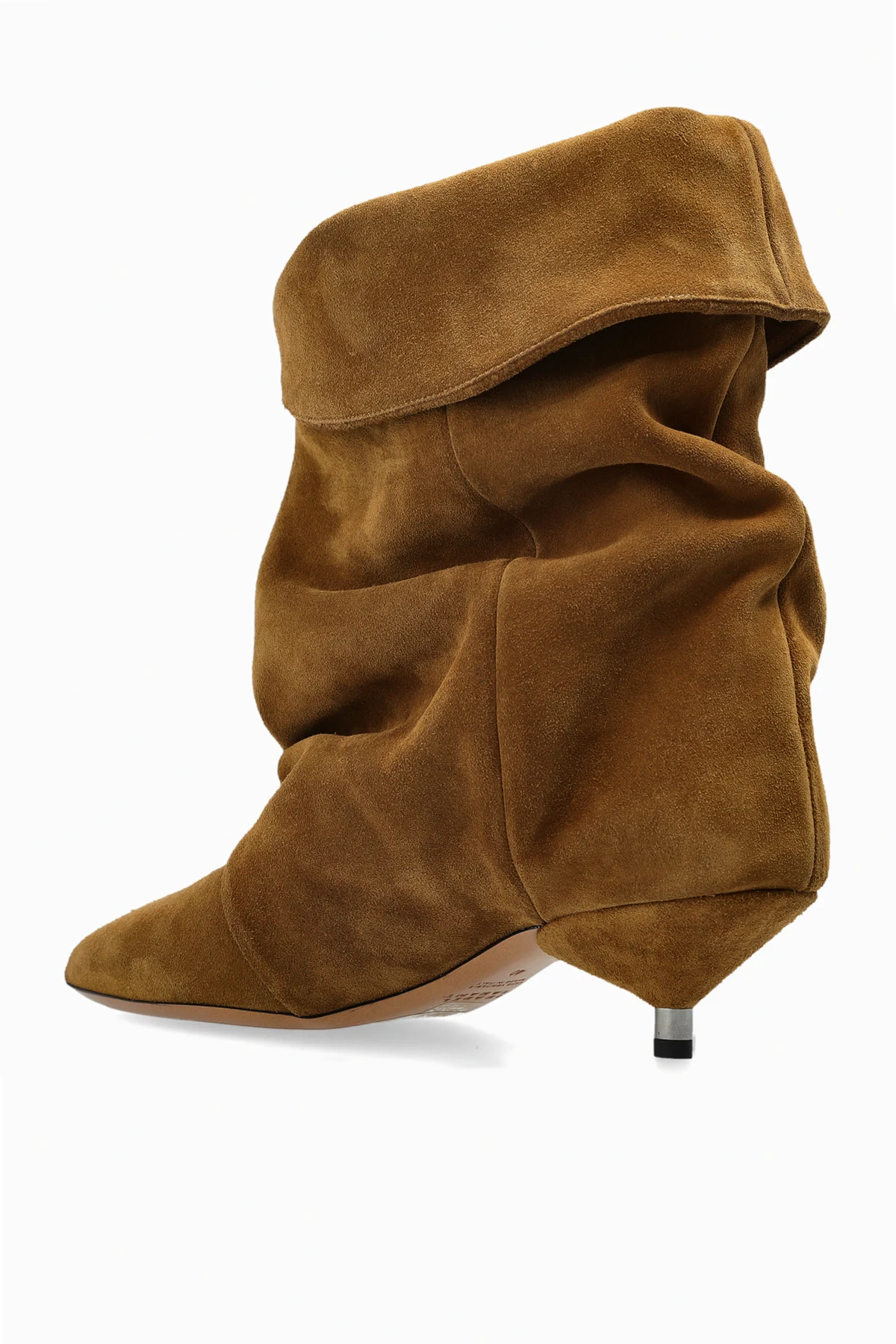 Wir präsentieren Ihnen Wildleder High-Heeled Shoes "Edrik" von der renommierten Designerin Isabel Marant . Diese einzigartigen Schuhe sind aus hochwertigem Wildleder in der Farbe Khaki gefertigt, das Eleganz und Luxus ausstrahlt.
