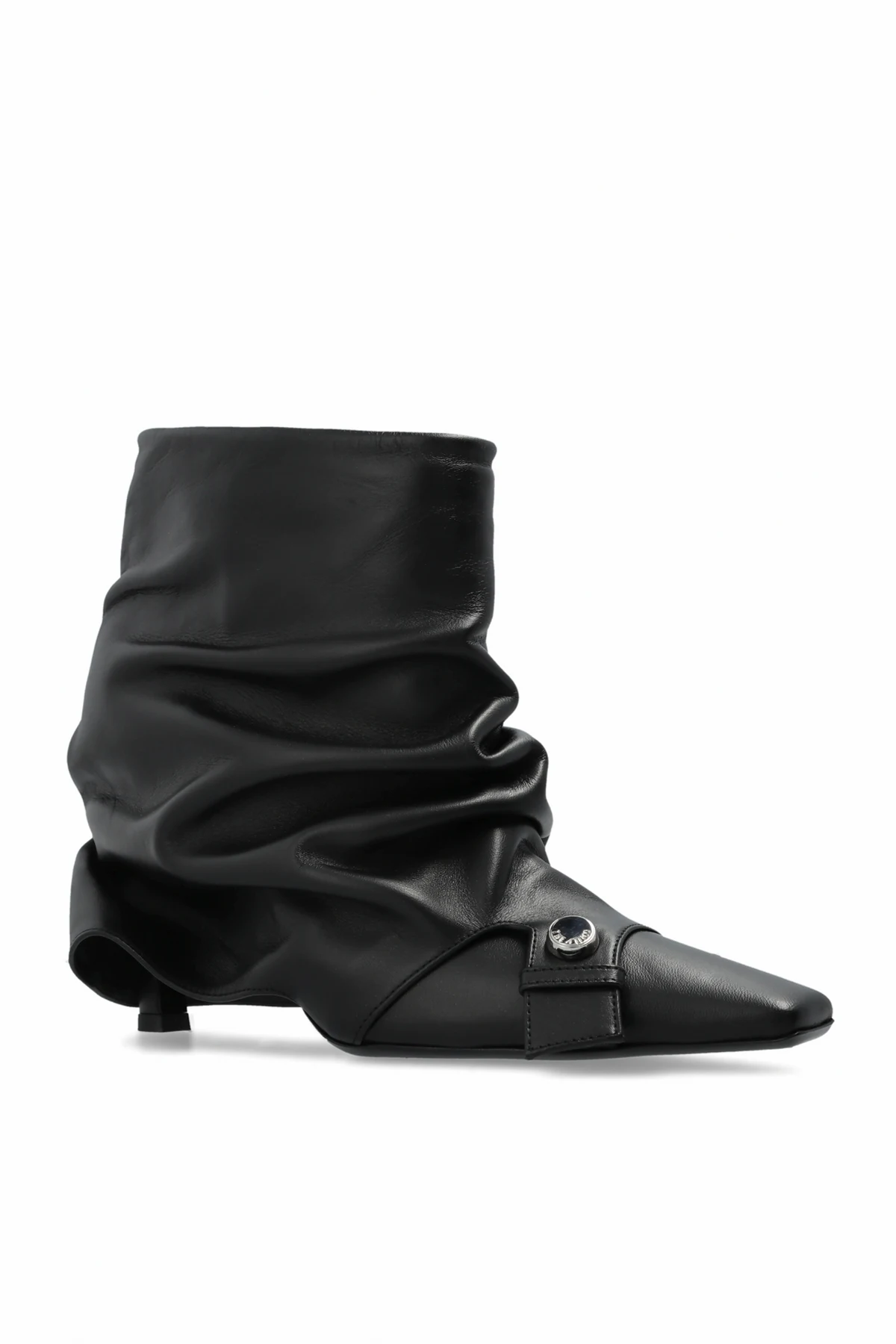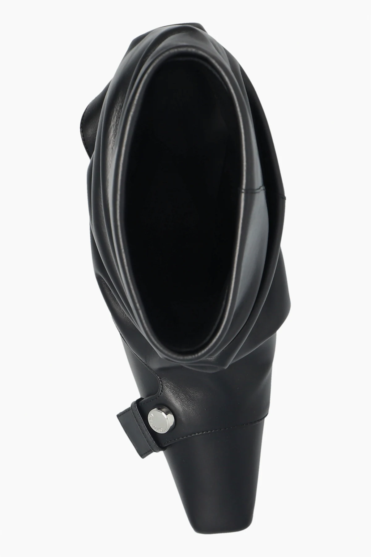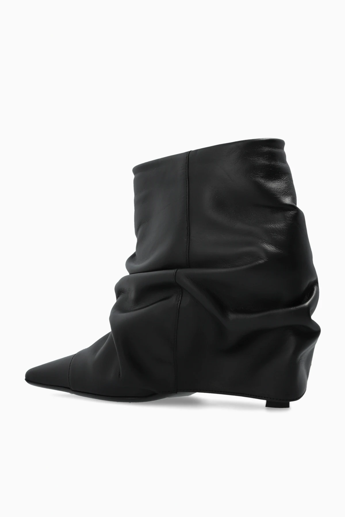 Wir präsentieren die High-Heeled Boots 'Juno' – die Essenz von Eleganz und modernem Design der Marke The Attico . Diese schwarzen Boots zeichnen sich durch einen gerafften Schaft aus, der in Kombination mit der spitzen Zehenpartie ihrem Charakter eine unverwechselbare Note verleiht. Dank des niedrigen Absatzes verbinden sie Komfort mit Raffinesse.