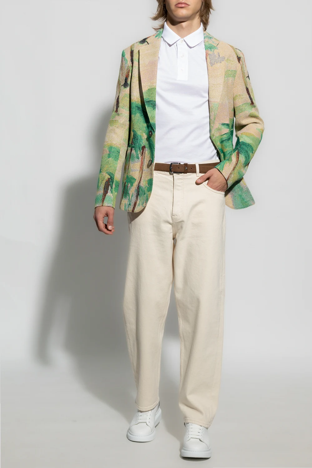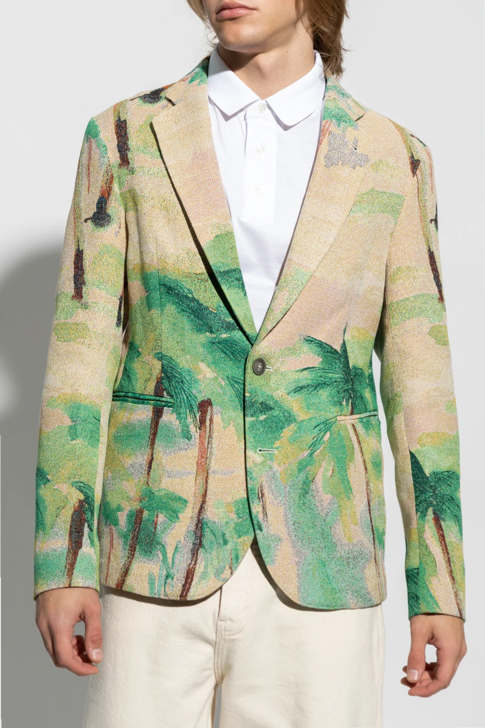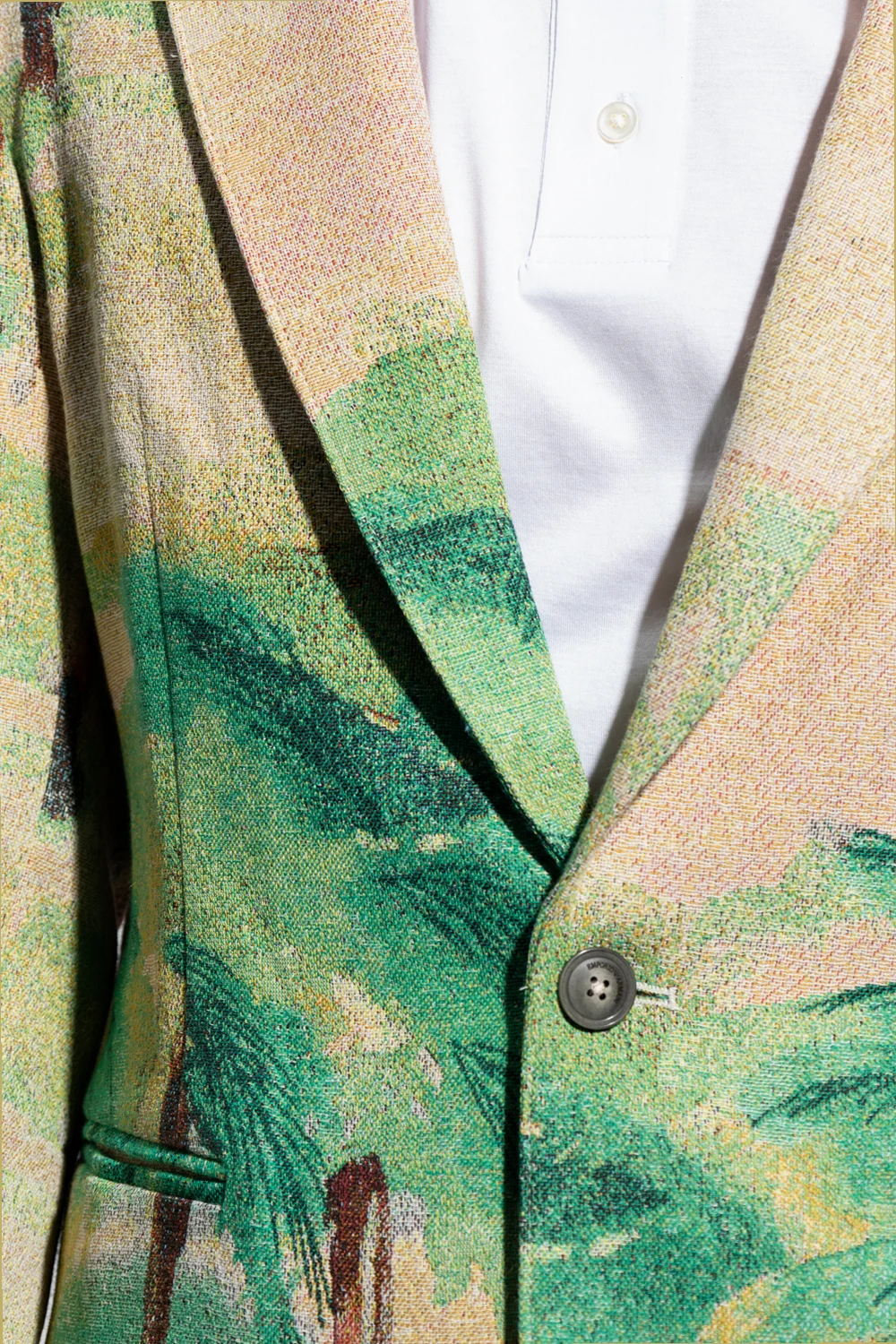 Multicoloured blazer from Emporio Armani. Embellished with a floral motif, this style features button fastenings, notch lapels, long sleeves and two frontal pockets.