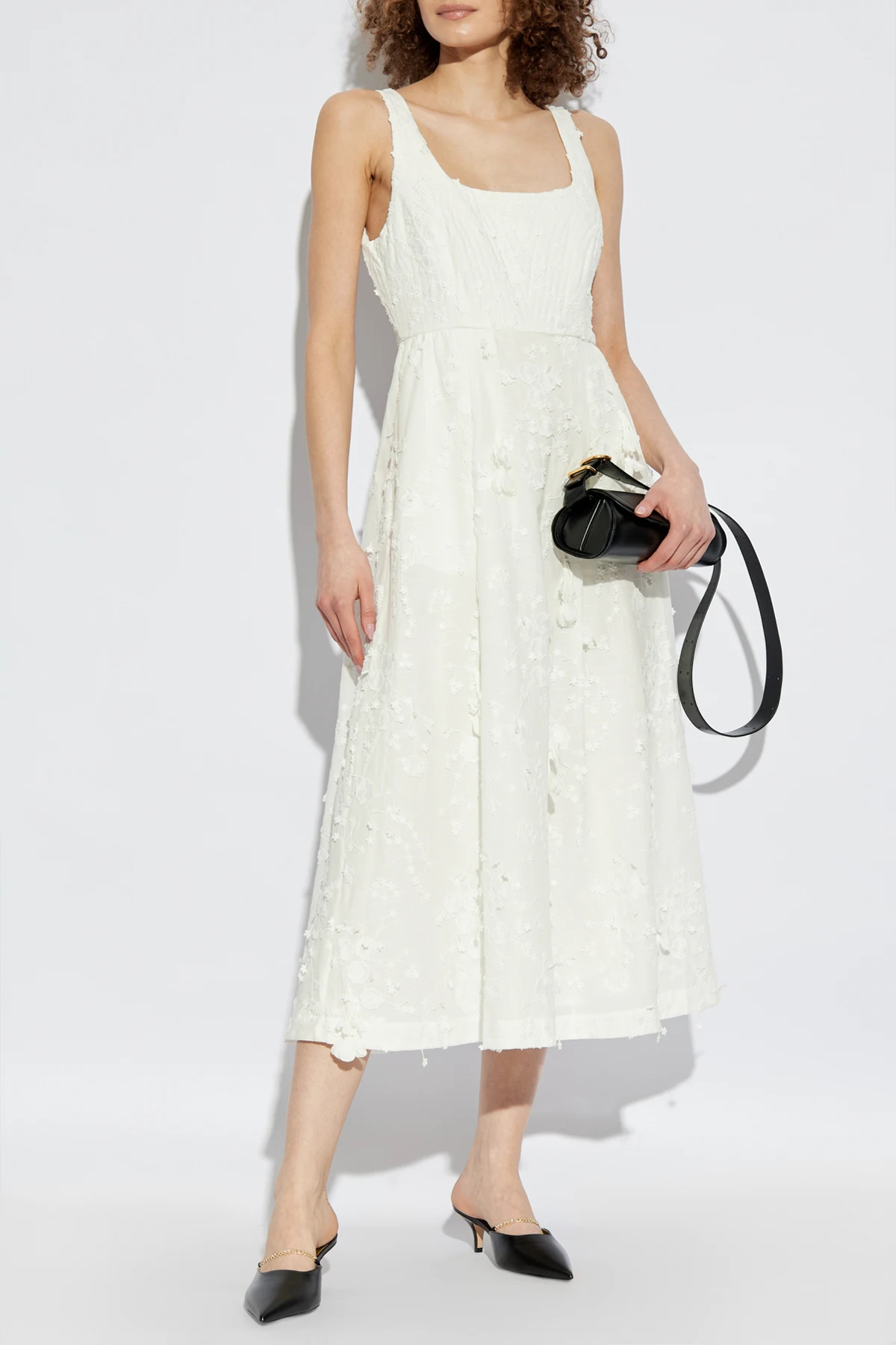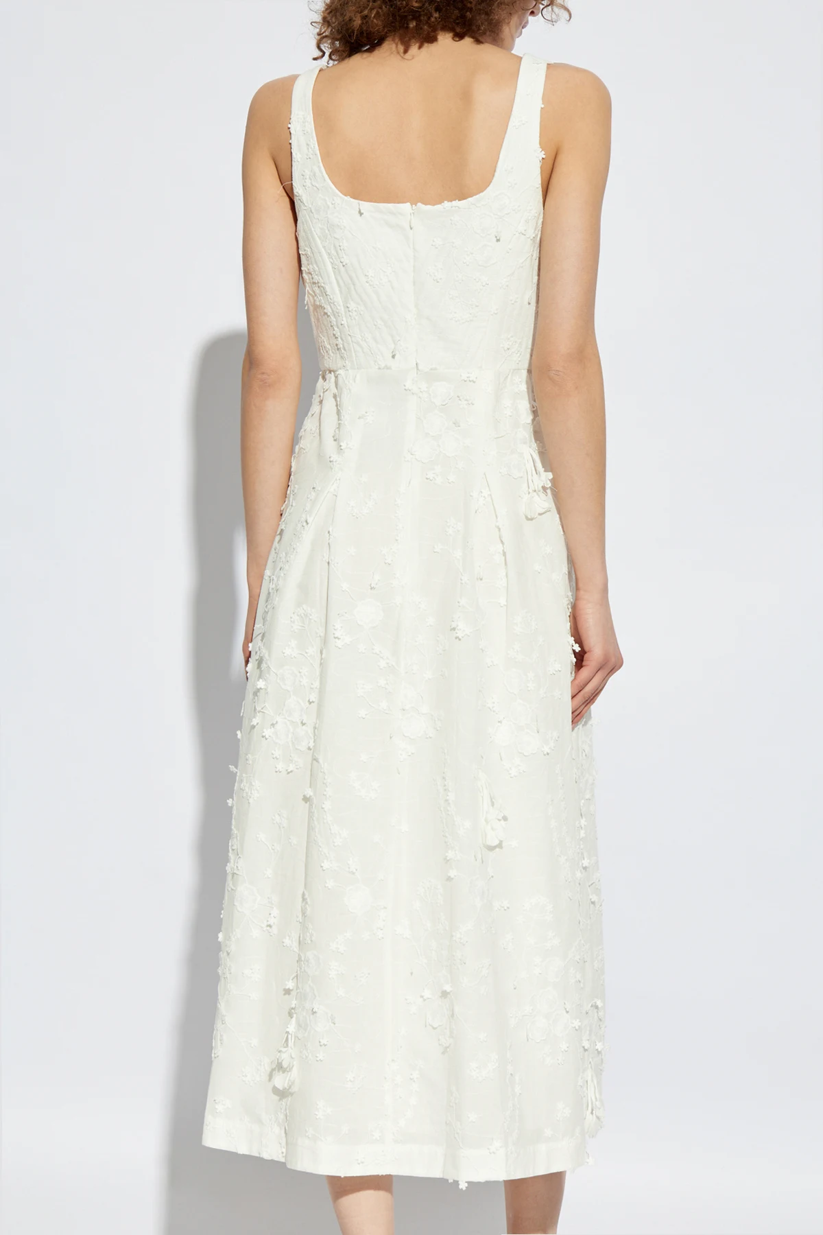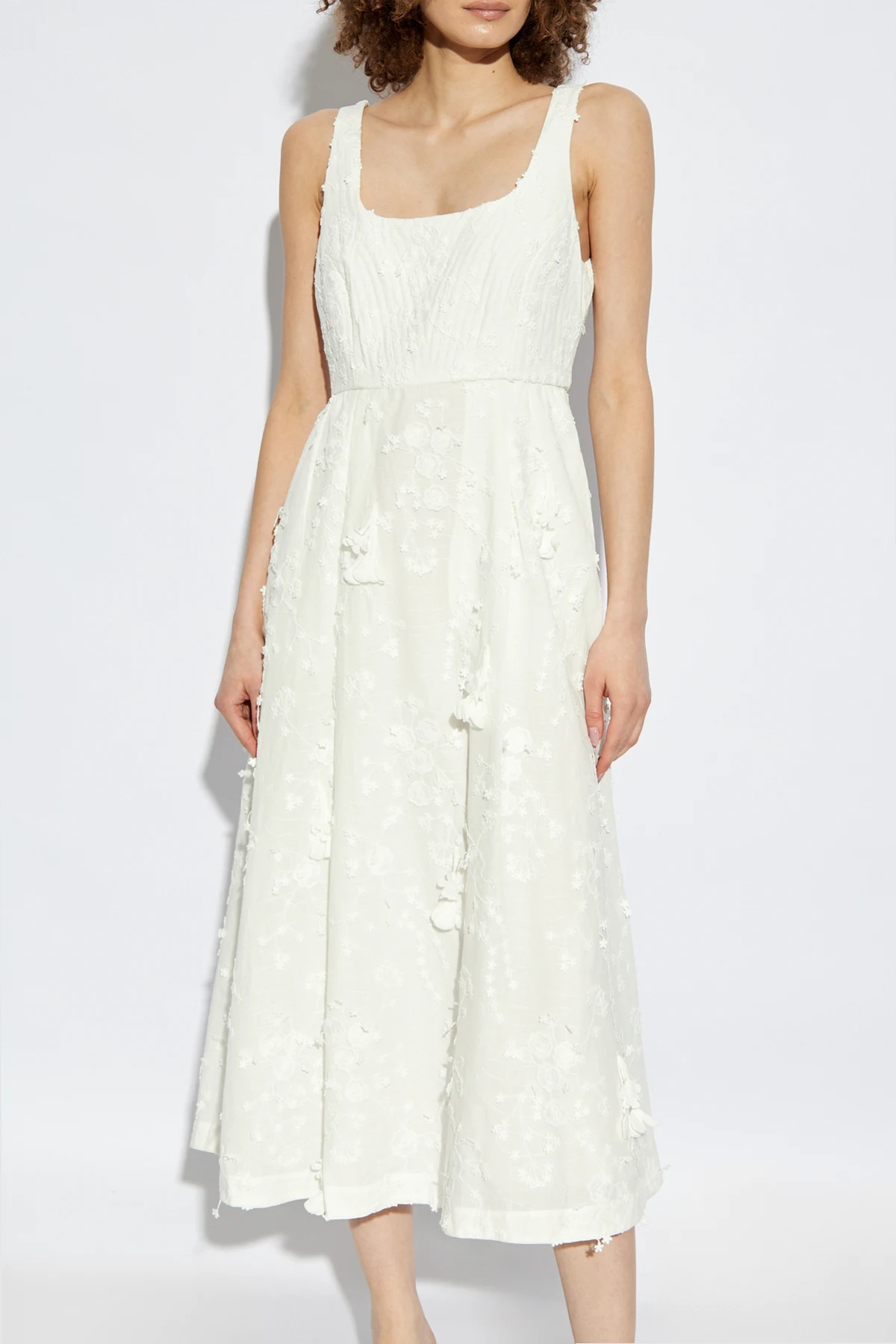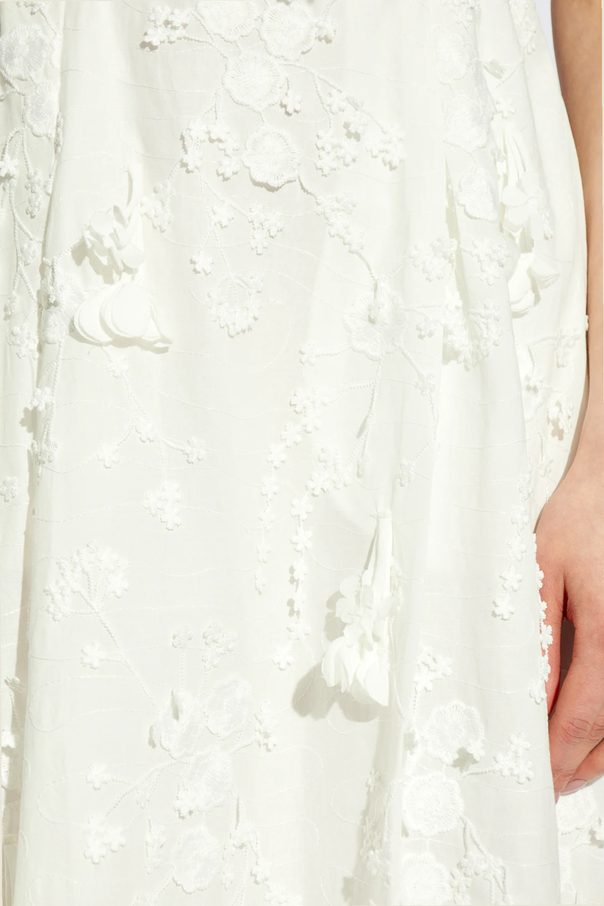 Hergestellt aus hochwertiger 100% biologischer Baumwolle , bietet das Kleid Leichtigkeit und Atmungsaktivität, was es zur idealen Wahl für wärmere Tage macht. Das zarte Blumenmuster auf weißem Hintergrund verleiht ihm einen einzigartigen Charme und Eleganz, während der quadratische Ausschnitt und der ausgestellte Saum die weibliche Silhouette betonen.