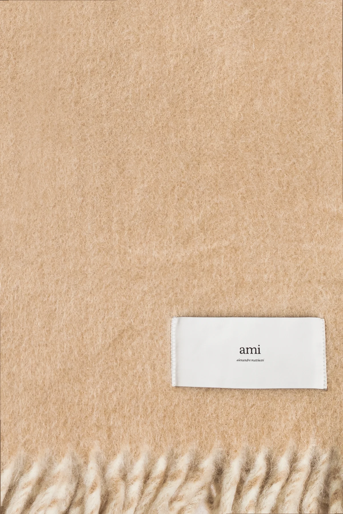 Die dominierende beige Farbe verleiht ihr einen dezenten, universellen Charakter, der sich perfekt in jedes Interieur einfügt. An einem Ende der Decke befinden sich lange, gedrehte Fransen, die ihr Stil und Eleganz verleihen. Zusätzlich zeugt das weiße Etikett mit der schwarzen Aufschrift "ami" und "alexandre mattiussi" von der hohen Qualität und dem Prestige des Produkts.