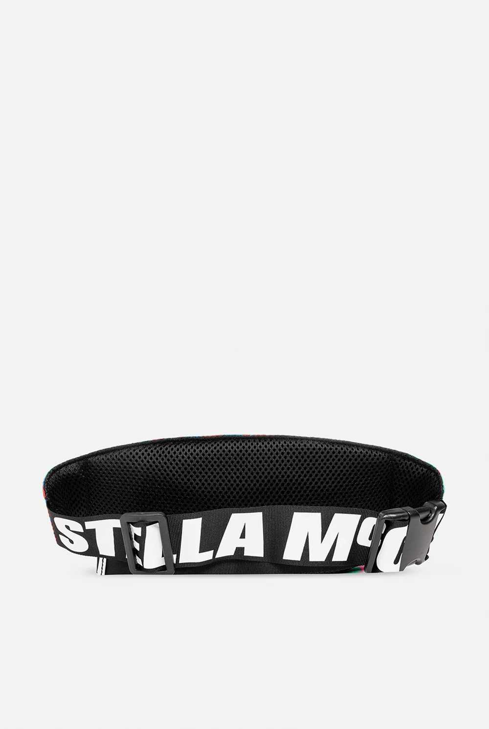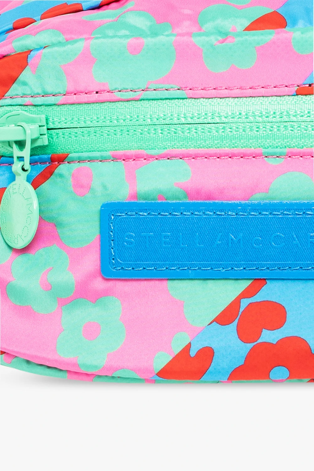 Multicolored belt bag from Stella McCartney Kids. Crafted from recycled materials, this model fastens with a zip and is decorated with a floral motif. It is complete with a zip pocket with blue patch, adjustable belt with a white logo print, one internal compartment and green metal hardware.