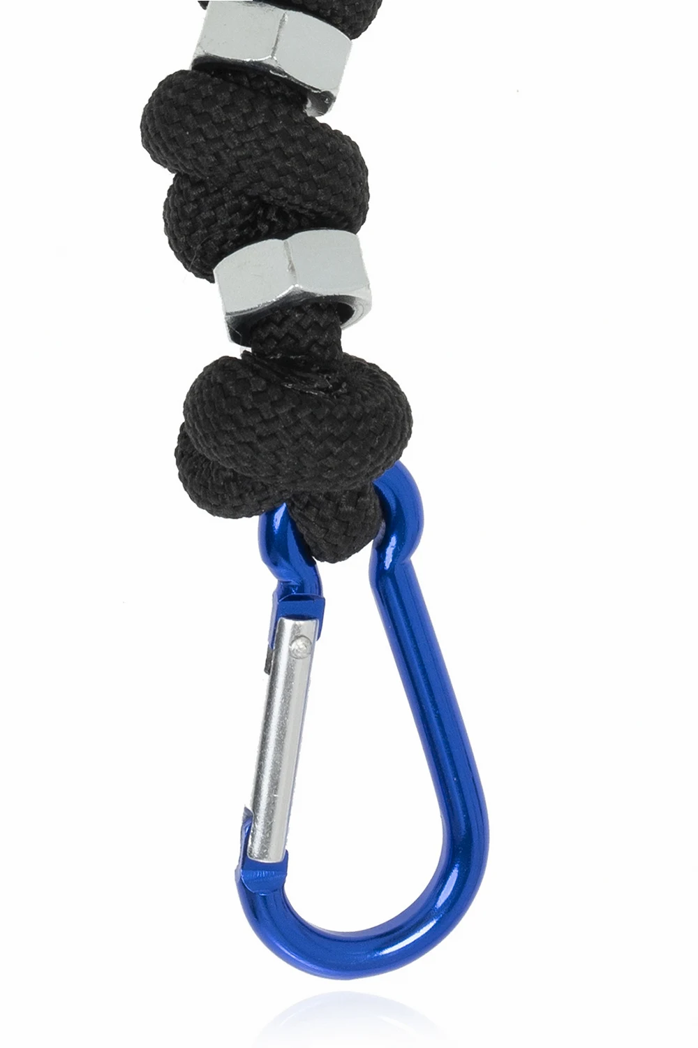 Black keyring with silver-tone and blue clips from Diesel.