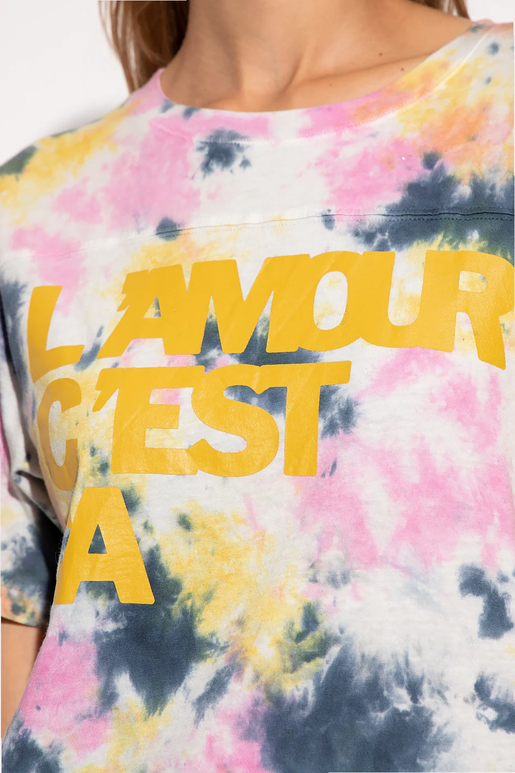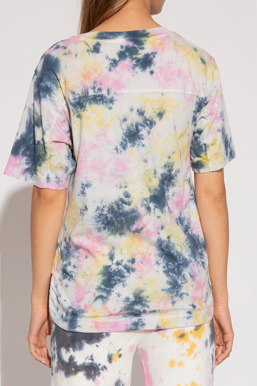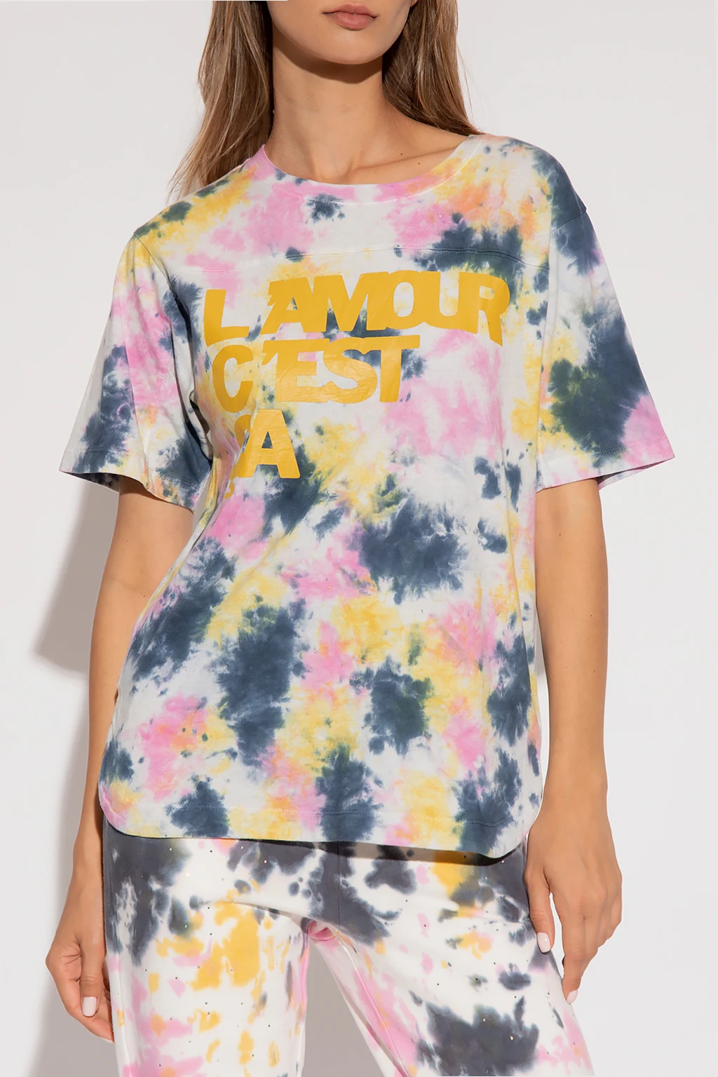 Multicoloured‘Bow’ crewneck T-shirt from Zadig & Voltaire. Crafted from organic cotton with the GOTS certificate, this style features a tie-dye effect, printed yellow lettering, short sleeves and an elasticated collar.