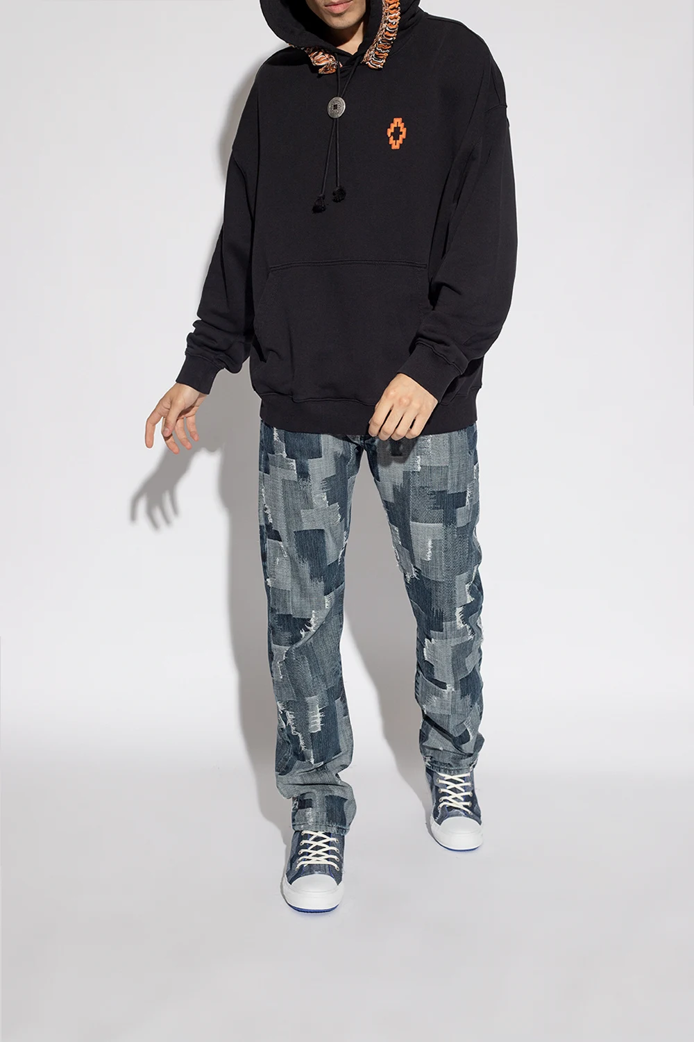 Navy blue and white ‘All Over’ sneakers from Marcelo Burlon. Crafted from cotton with a high-top silhouette, this lace-up model sits on a white rubber sole and features an embossed logo at the back.