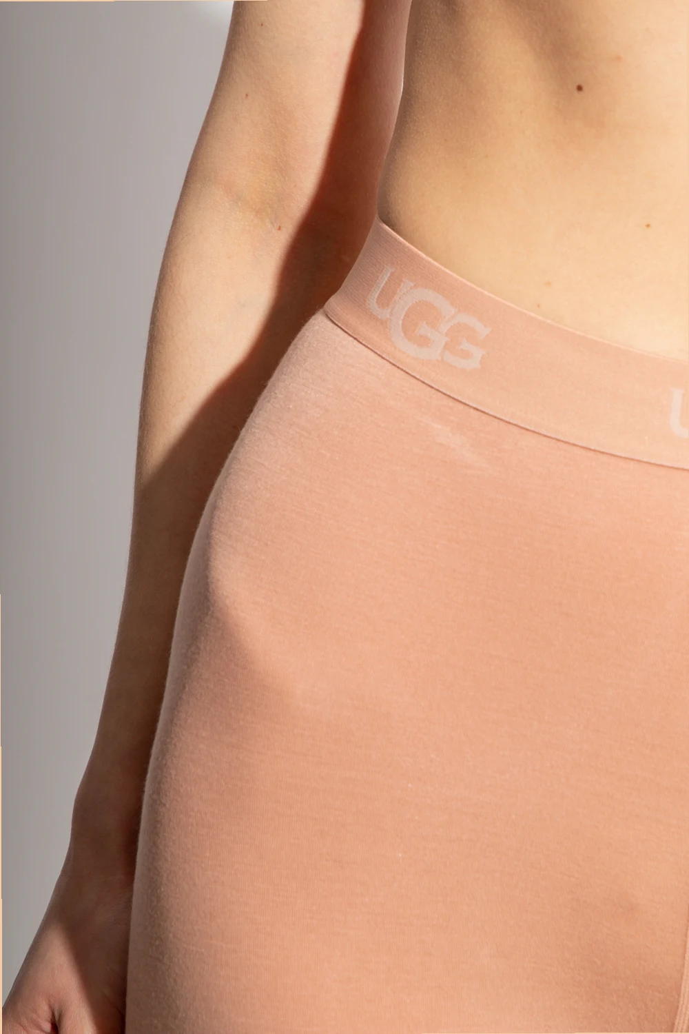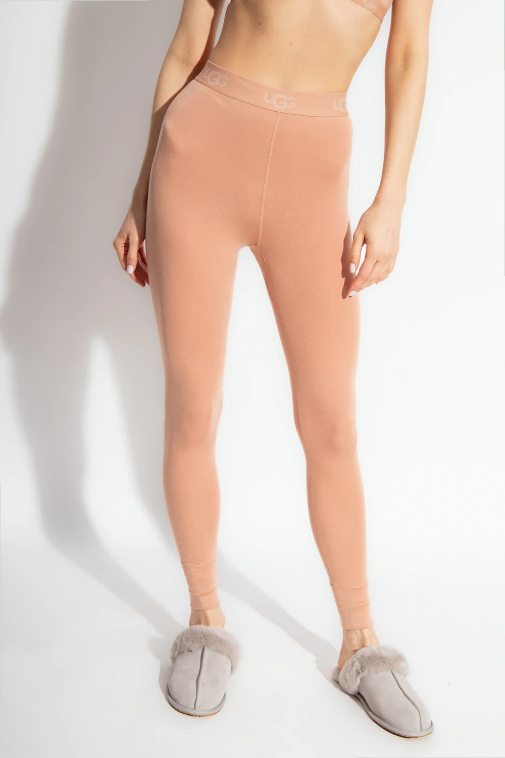 Beige ‘Paloma’ leggings from UGG, the ‘Underwear’ line. Crafted from environmentally-friendly material with a high-rise waist, this style features an elasticated waistband with an embroidered logo and cuffs at the ankle.