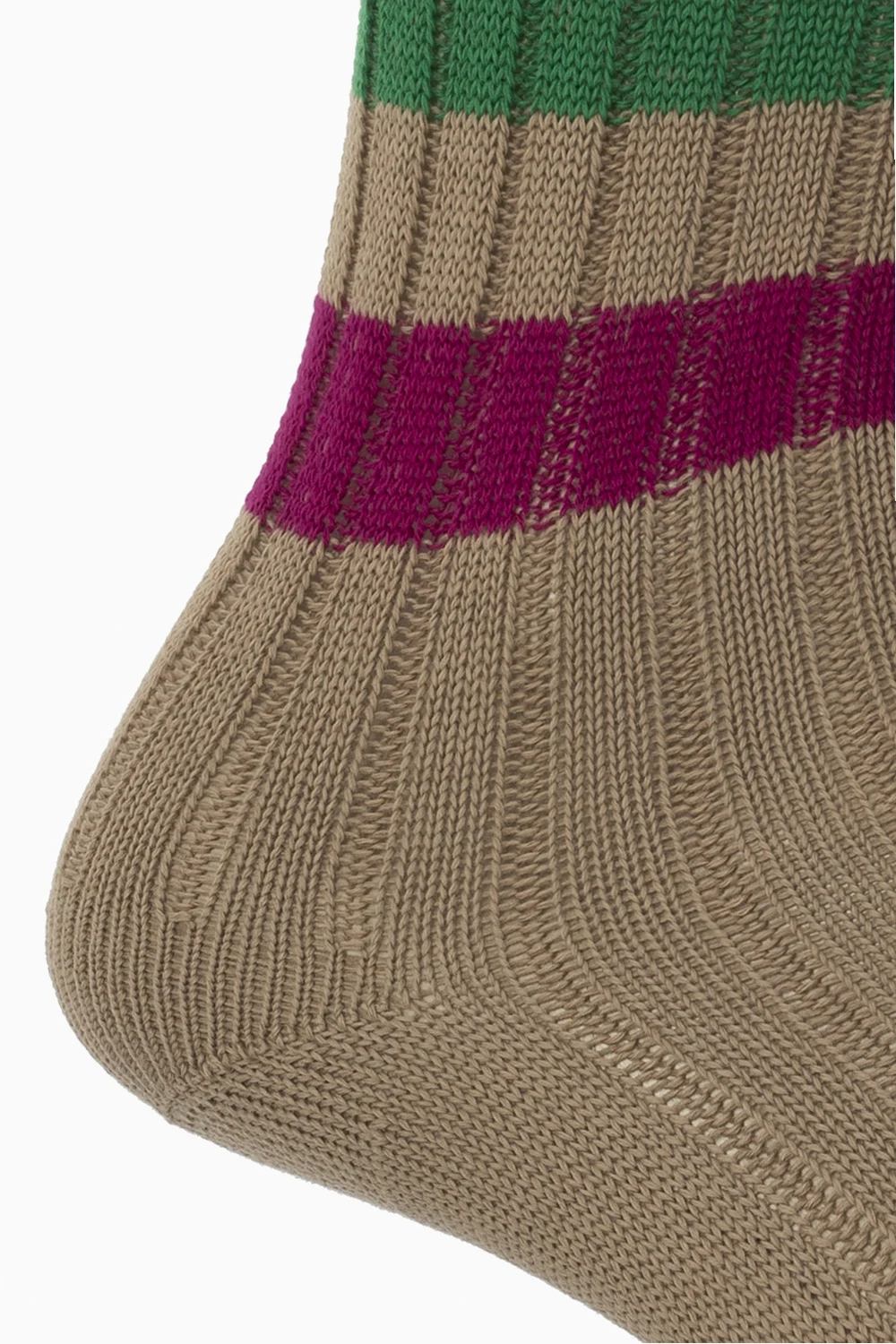 Light brown socks from Emporio Armani. Made of ribbed organic cotton, this pair features a multicolored stripe pattern.