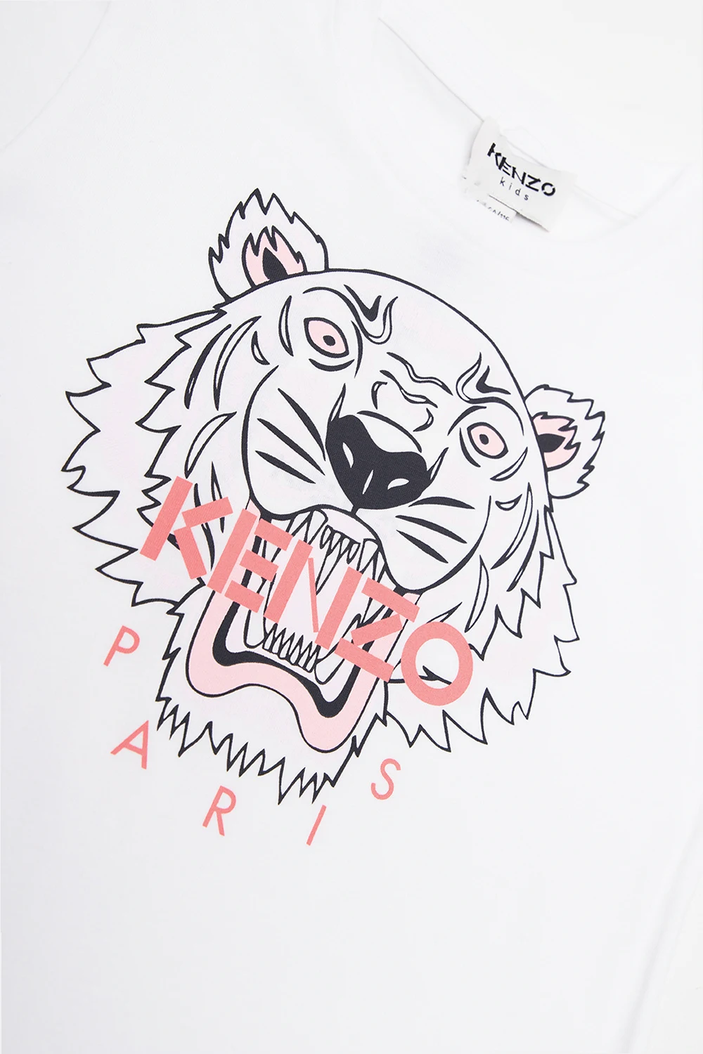 White T-shirt from Kenzo Kids. Crafted from organic cotton, this garment features the label’s signature embroidered tiger head in pink and black as well as a ribbed crewneck.