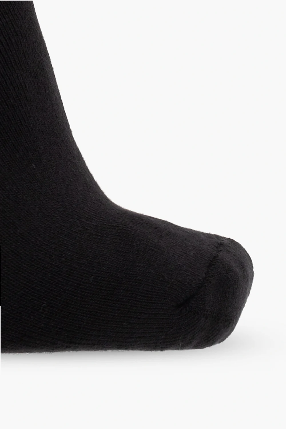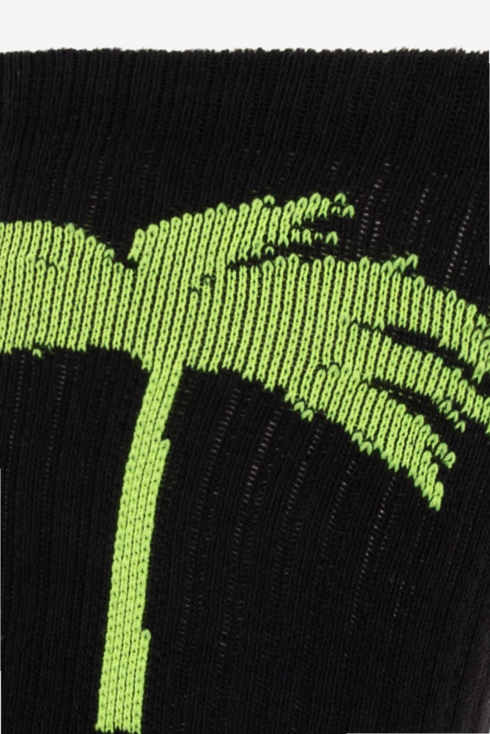 Black socks from Palm Angels. Made of cotton, this pair has ribbed cuffs and is decorated with the brand’s signature palm tree motif in green.