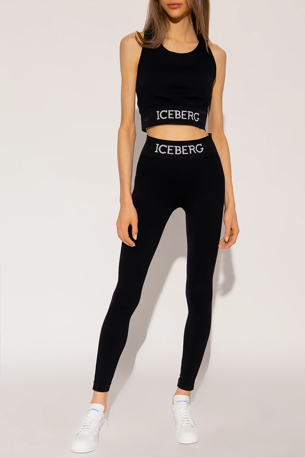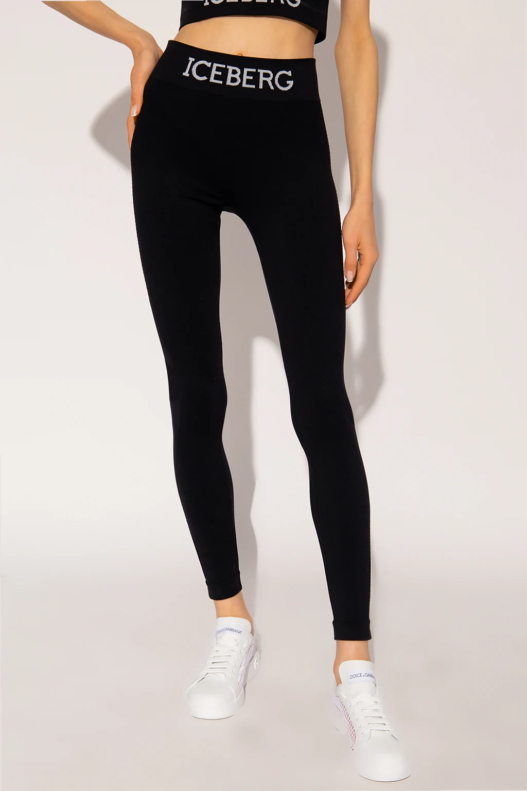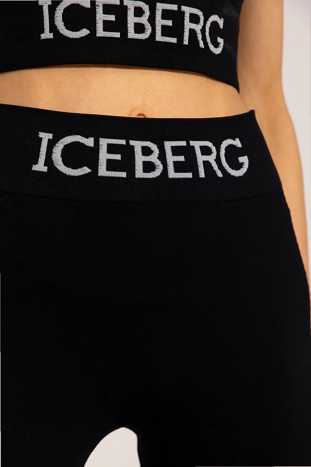 Black training leggings from Iceberg. Crafted from a stretch fabric blend, they feature an elasticated waistband embroidered with a white logo.