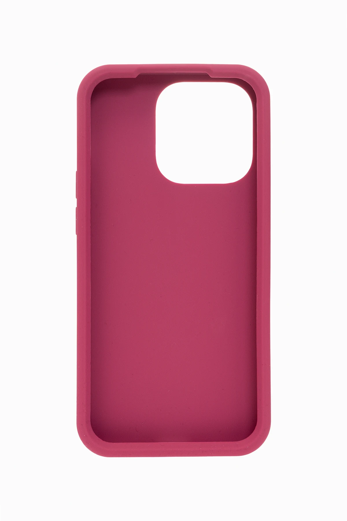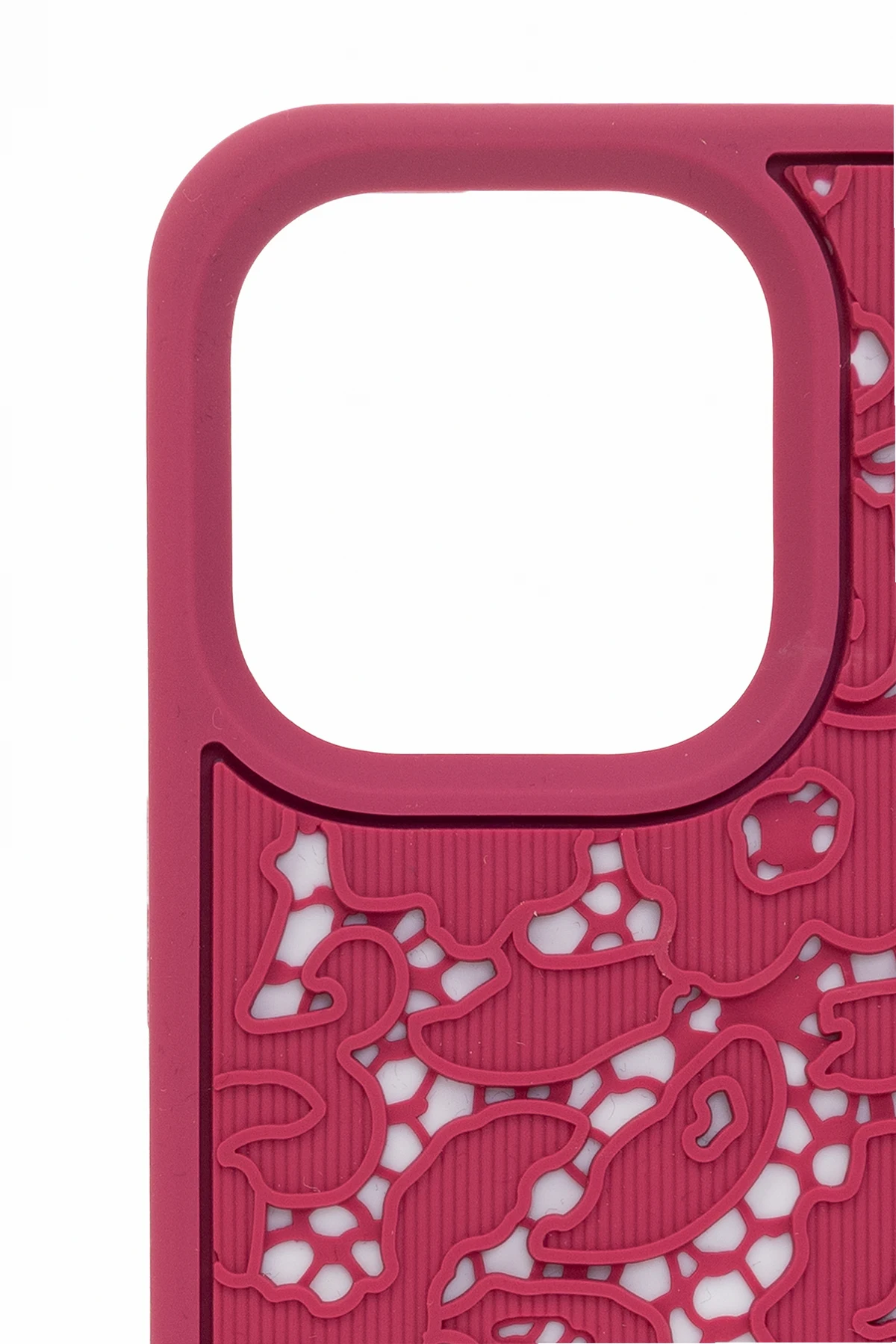 Pink iPhone 14 Pro case from Dolce & Gabbana. This item showcases a floral pattern accompanied with the brand's logo.