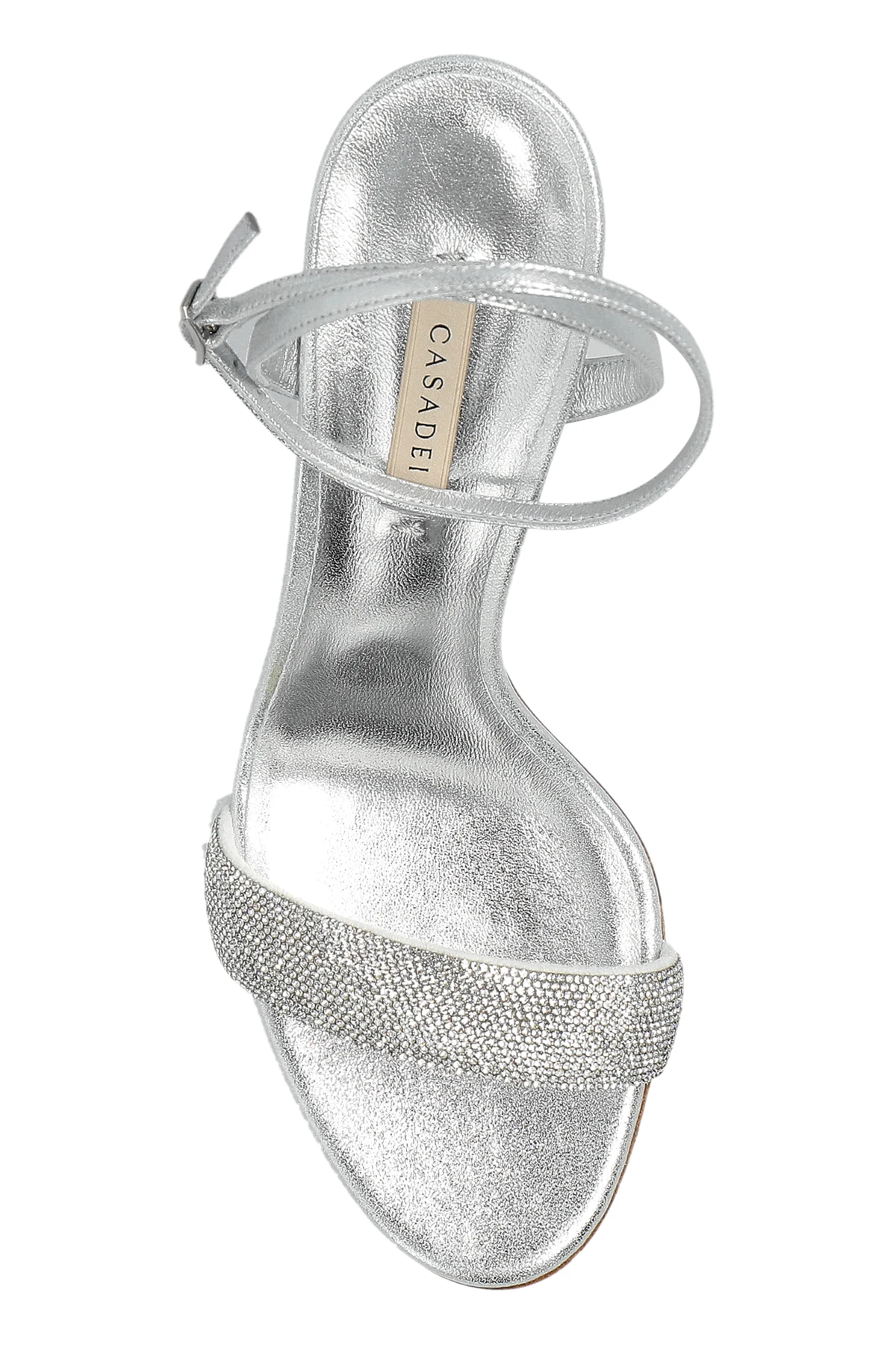 Wir präsentieren HIGH-HEELED SANDALS von der renommierten Marke Casadei. Diese luxuriösen Sandalen, gefertigt aus hochwertigsten silbernen Materialien, bieten eine Kombination aus Eleganz und Modernität, die jede Frau verzaubert. Der schlanke, hohe Absatz und der zarte Knöchelriemen, der mit einer Schnalle geschlossen wird, unterstreichen den feinen Charakter des Schuhwerks.