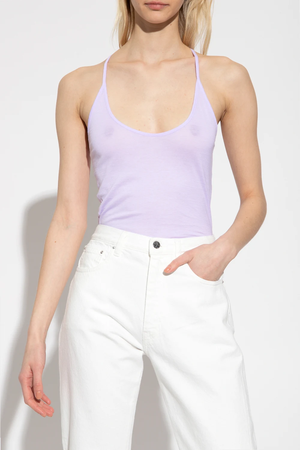 Light purple sleeveless top from Forte Forte. Crafted from cotton, this round neck design is decorated with a logo embroidery.