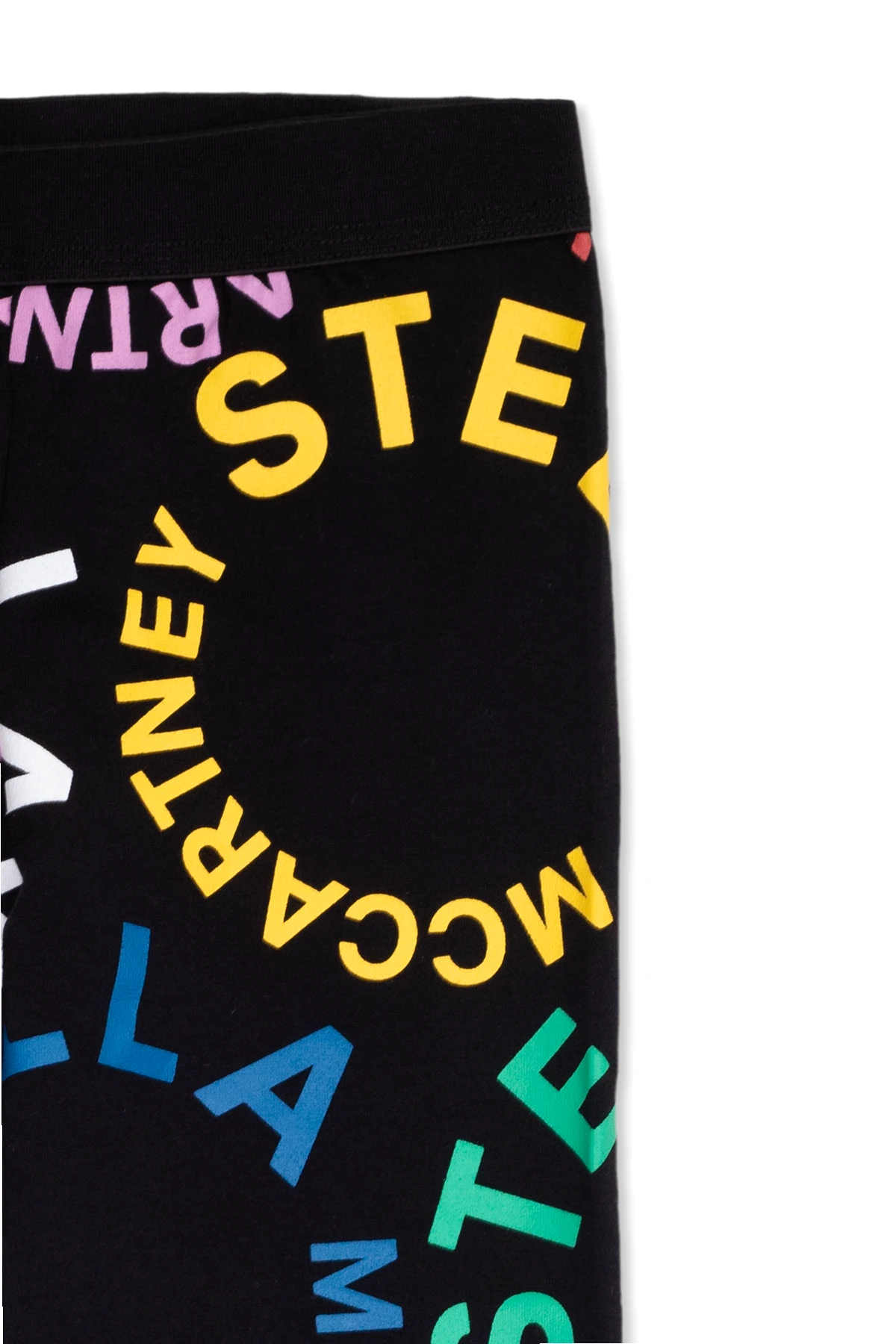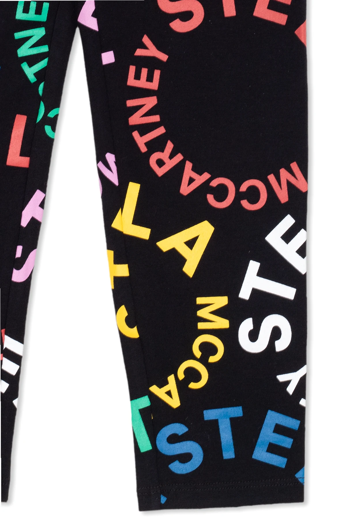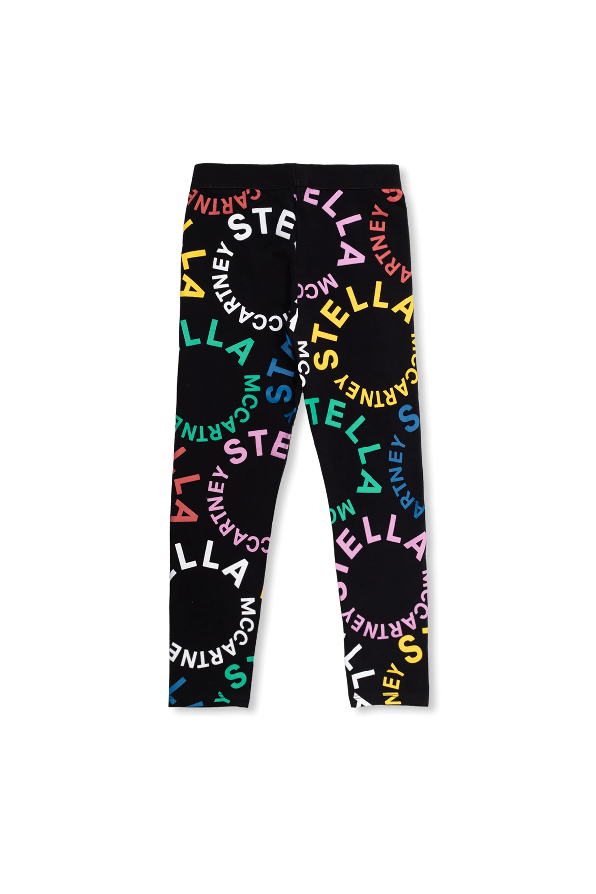 Black leggings from Stella McCartney Kids. Made of cotton, this pair is decorated with a multicolored print.