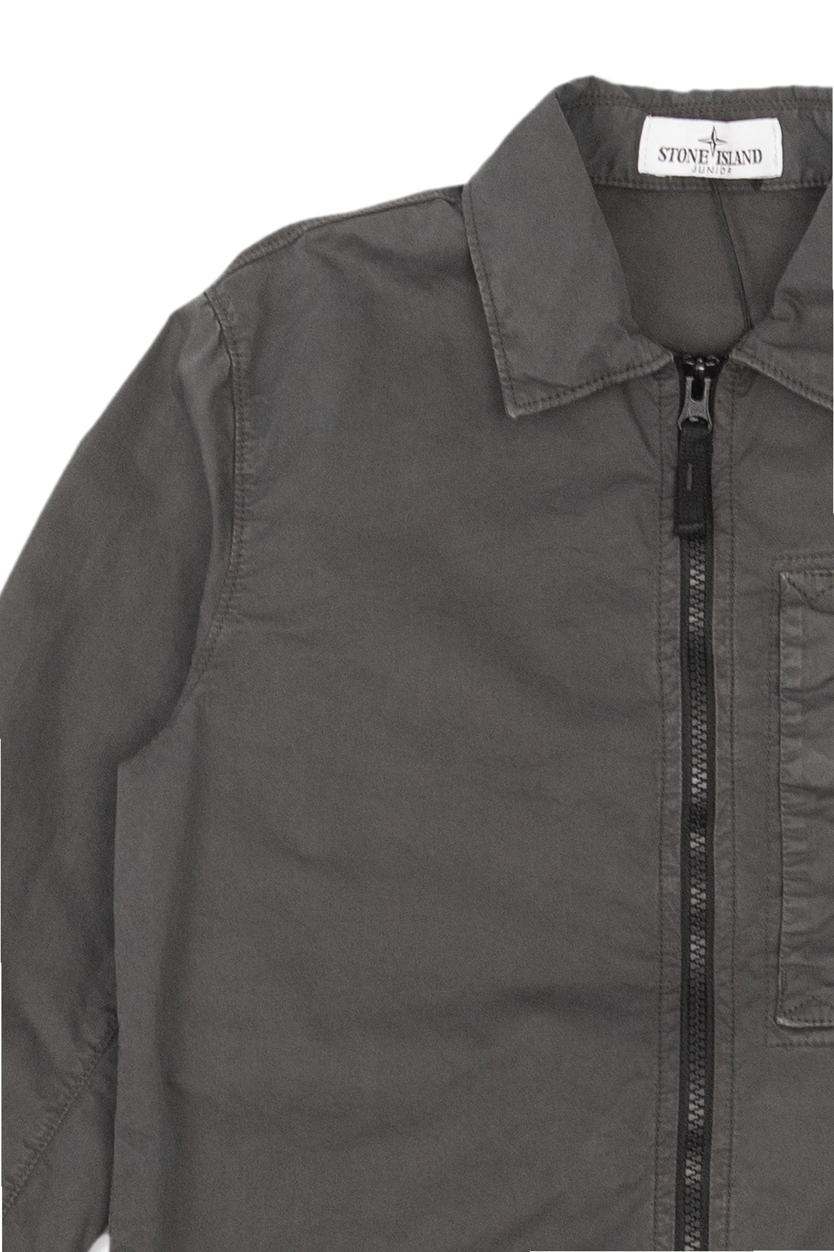 Gray shirt from Stone Island Kids. Made of cotton, this garment features a zip fastening, snap-fastened pocket and long sleeves with a logo patch.