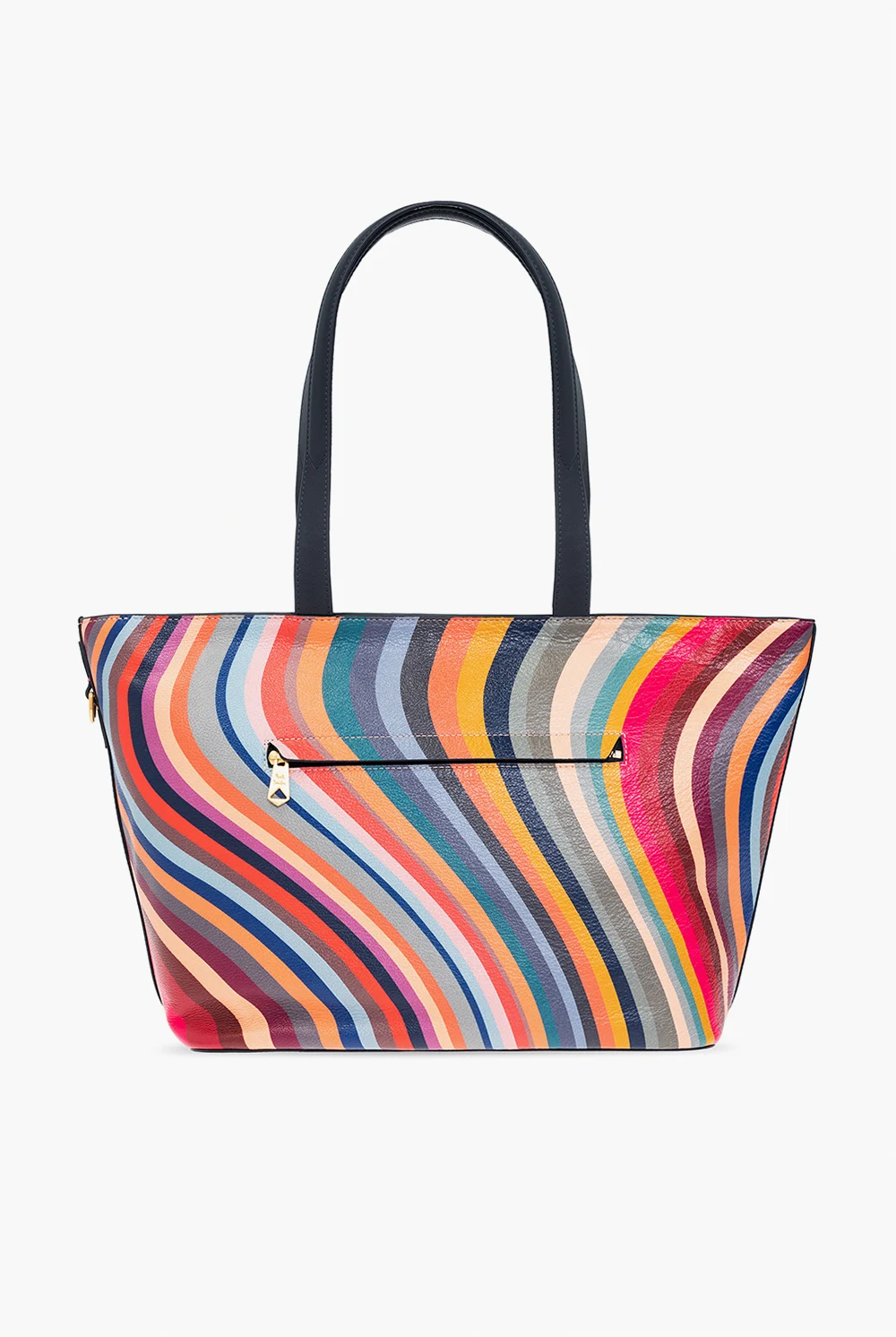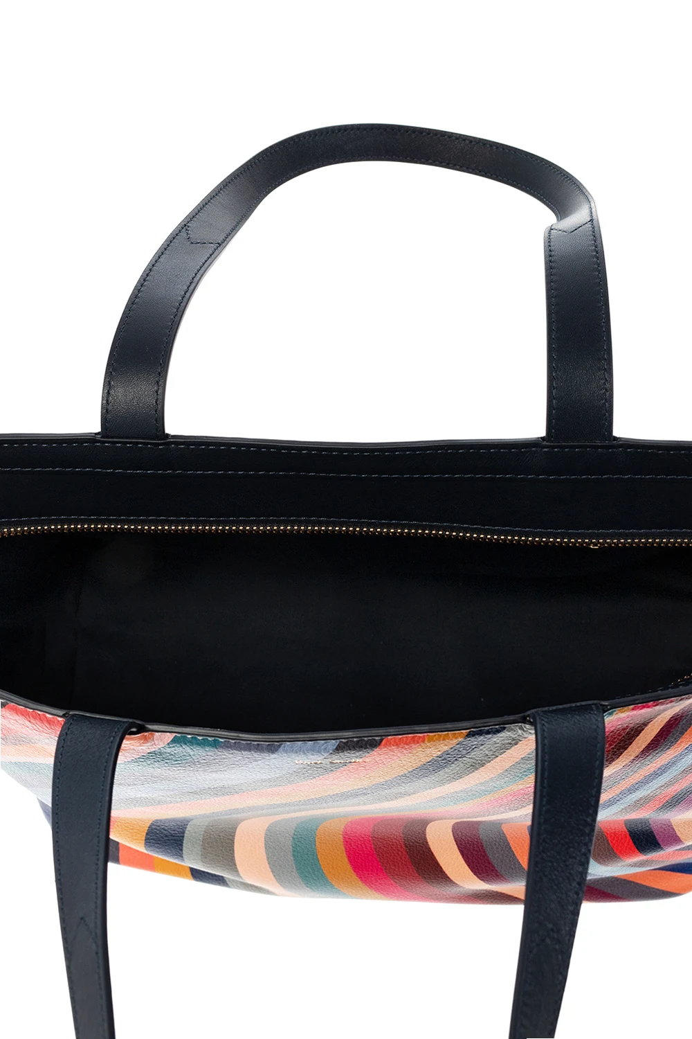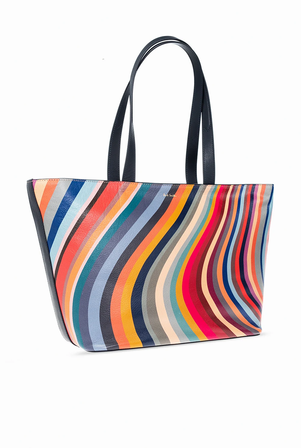 Multicoloured ‘Swirl’ shopper bag from Paul Smith. Crafted from calf leather, this design showcases a striped motif and an embossed logo. It is complete with a zip fastening, a back zip pocket, two half-round handles, gold-tone metal hardware and one internal compartment with one zip pocket and two slip pockets.