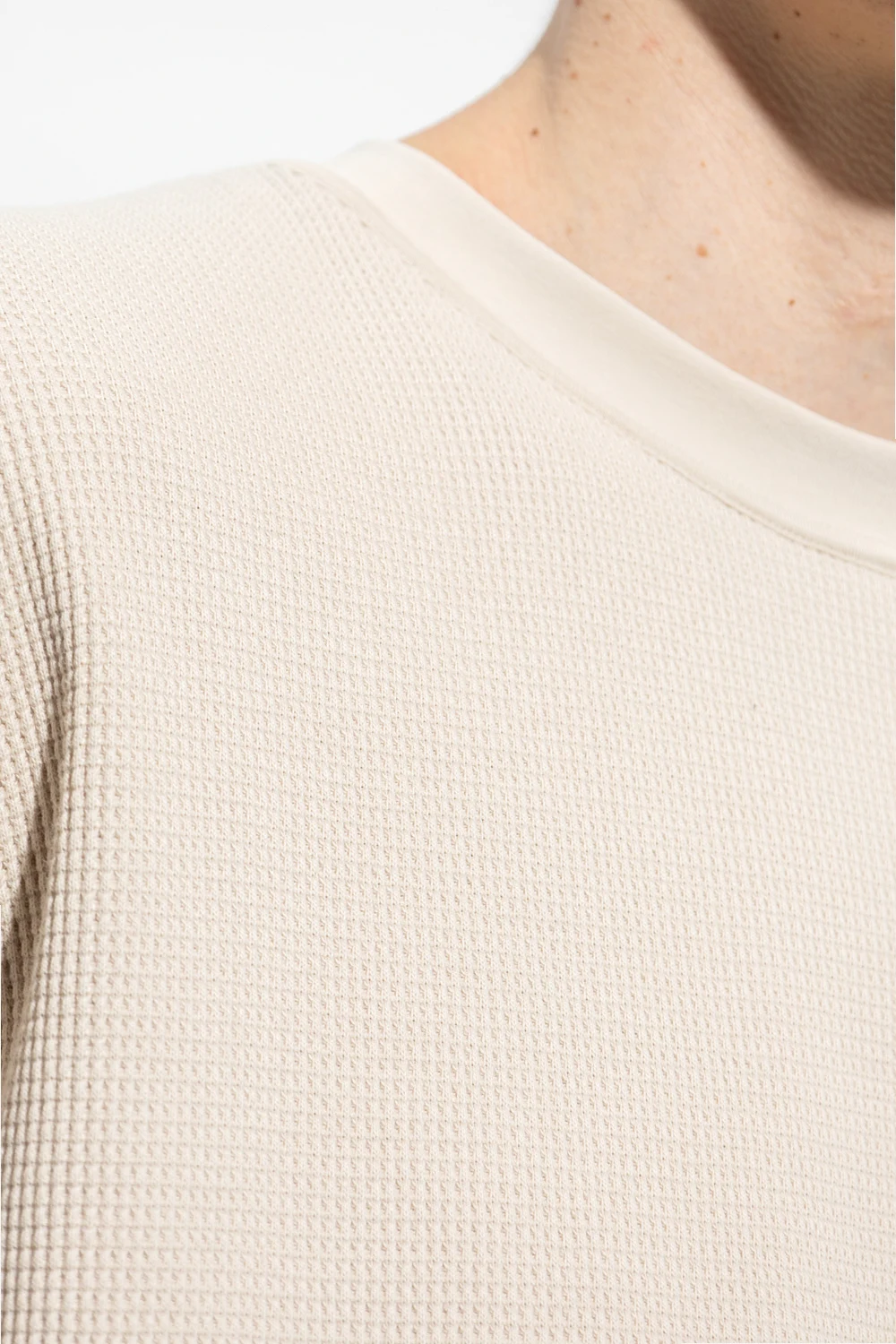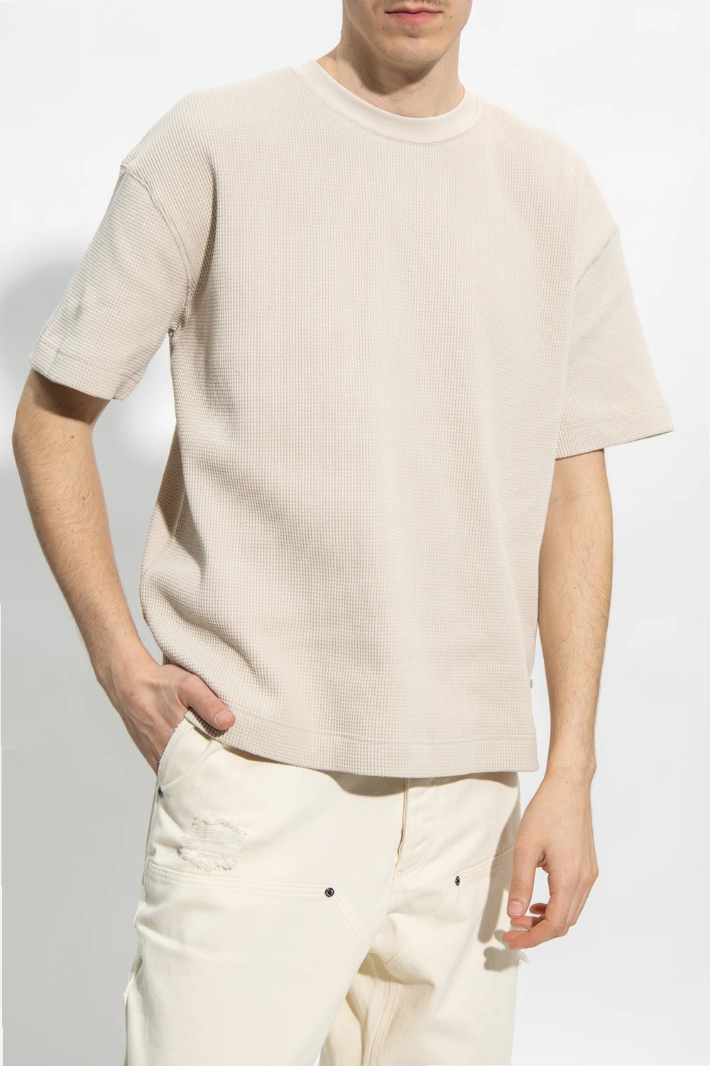 Beige ‘Josh’ T-shirt from Samsoe Samsoe. Crafted from organic cotton, this short sleeve design has a ribbed crew neck.