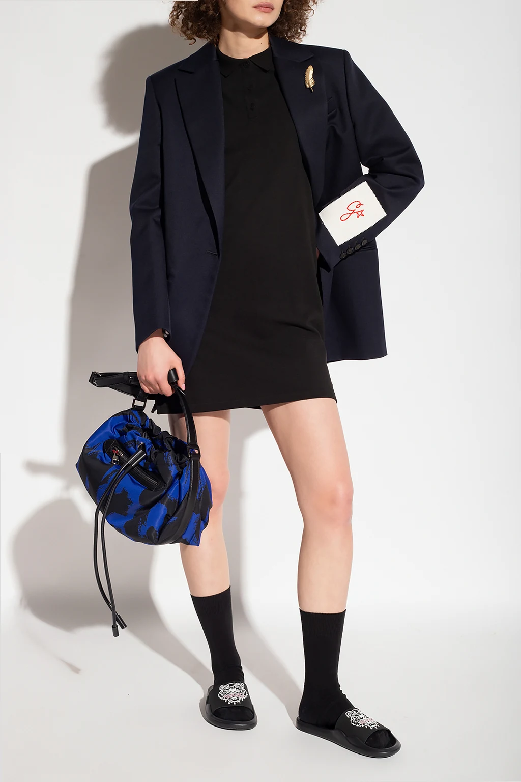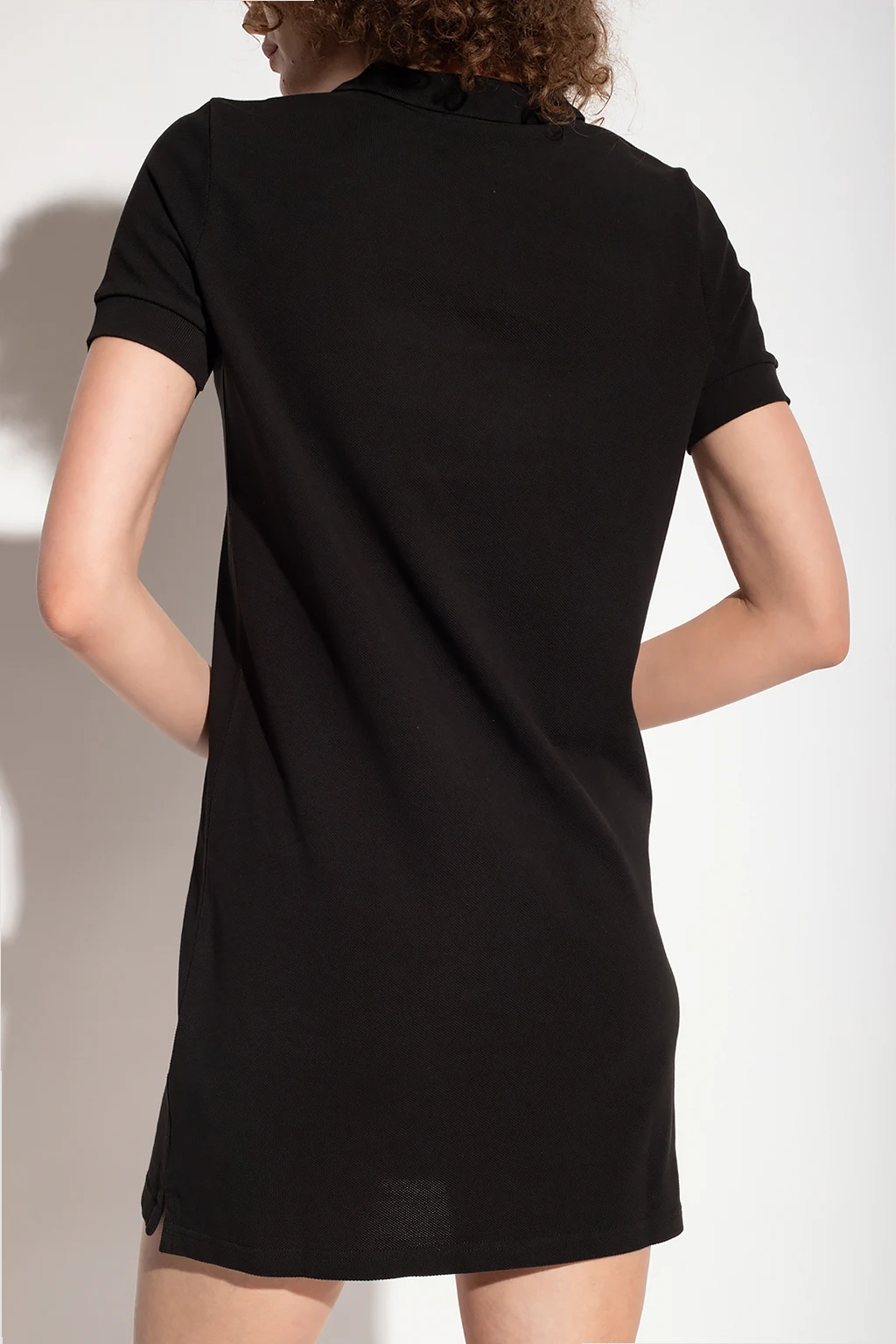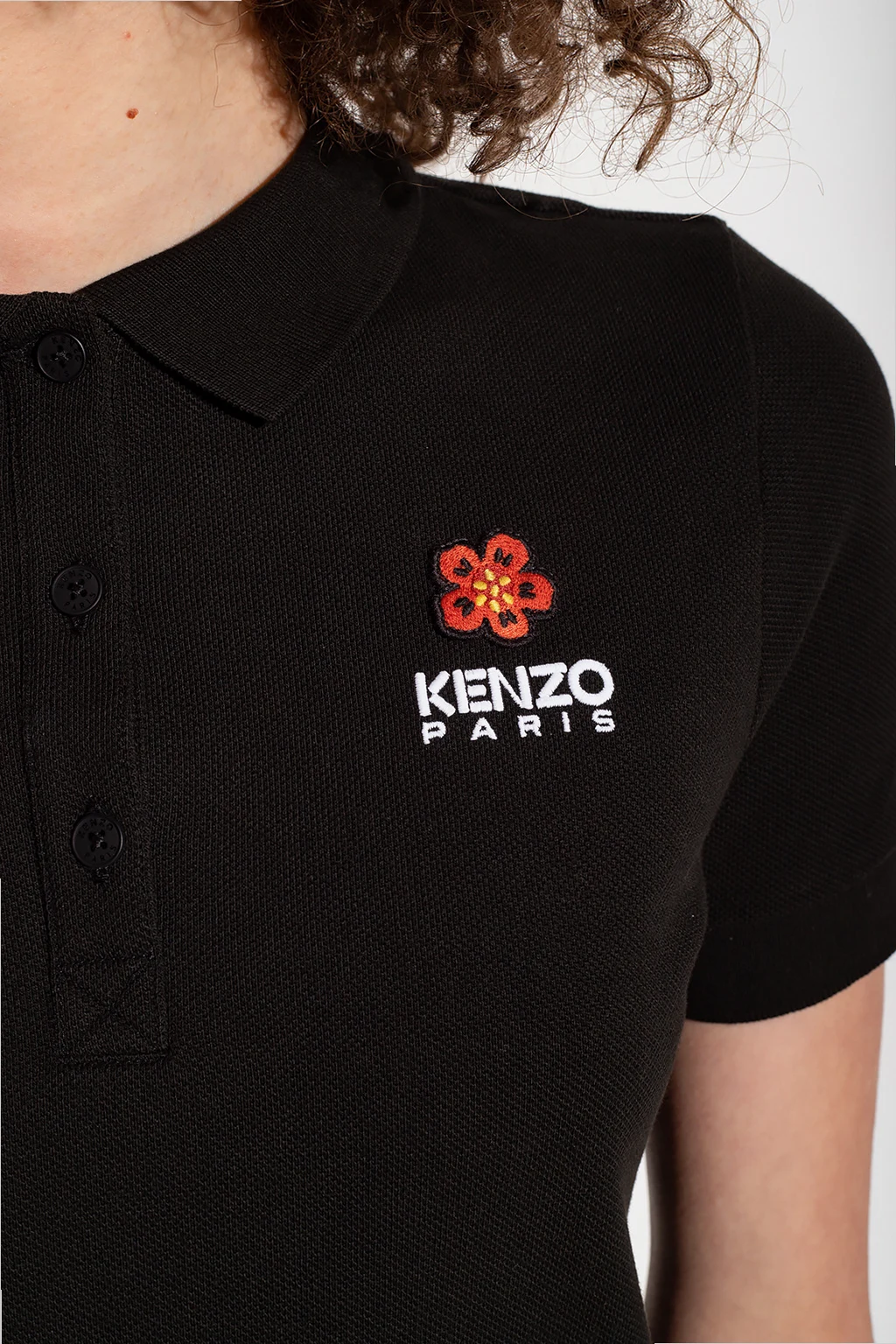 Black dress with a collar from Kenzo. Made of cotton, this short sleeve design features a white logo embroidery, floral patch, button fastenings and ribbed trims at the collar and cuffs.