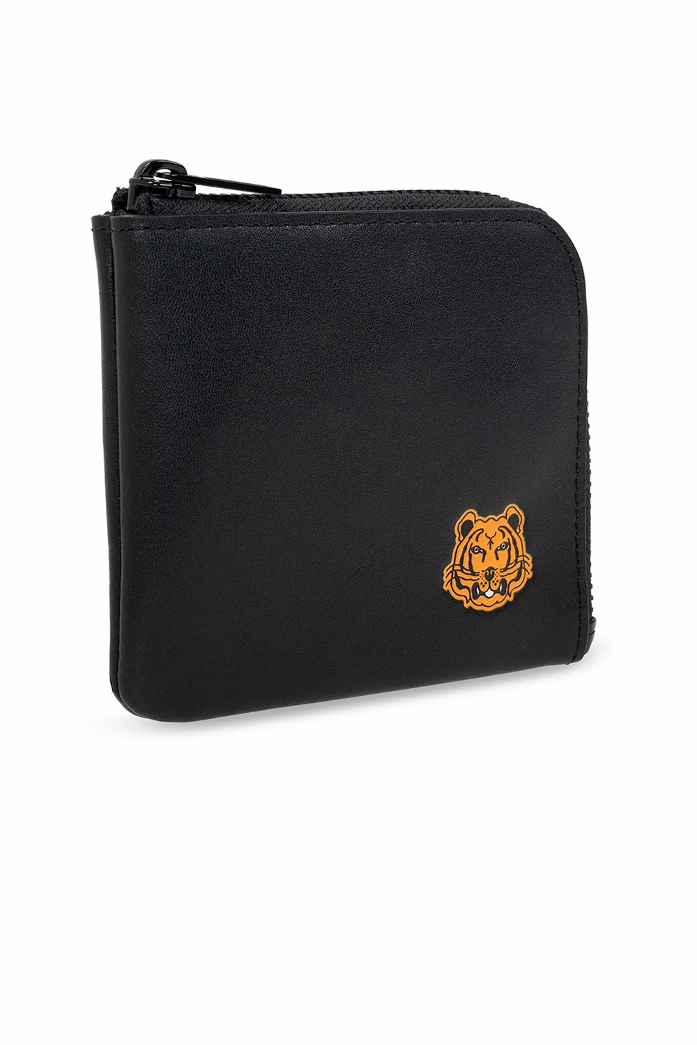 Black wallet from Kenzo. Crafted from cow leather, this item fastens via a zip and showcases the iconic motif of tiger embroidered in orange and an interior with two compartments.