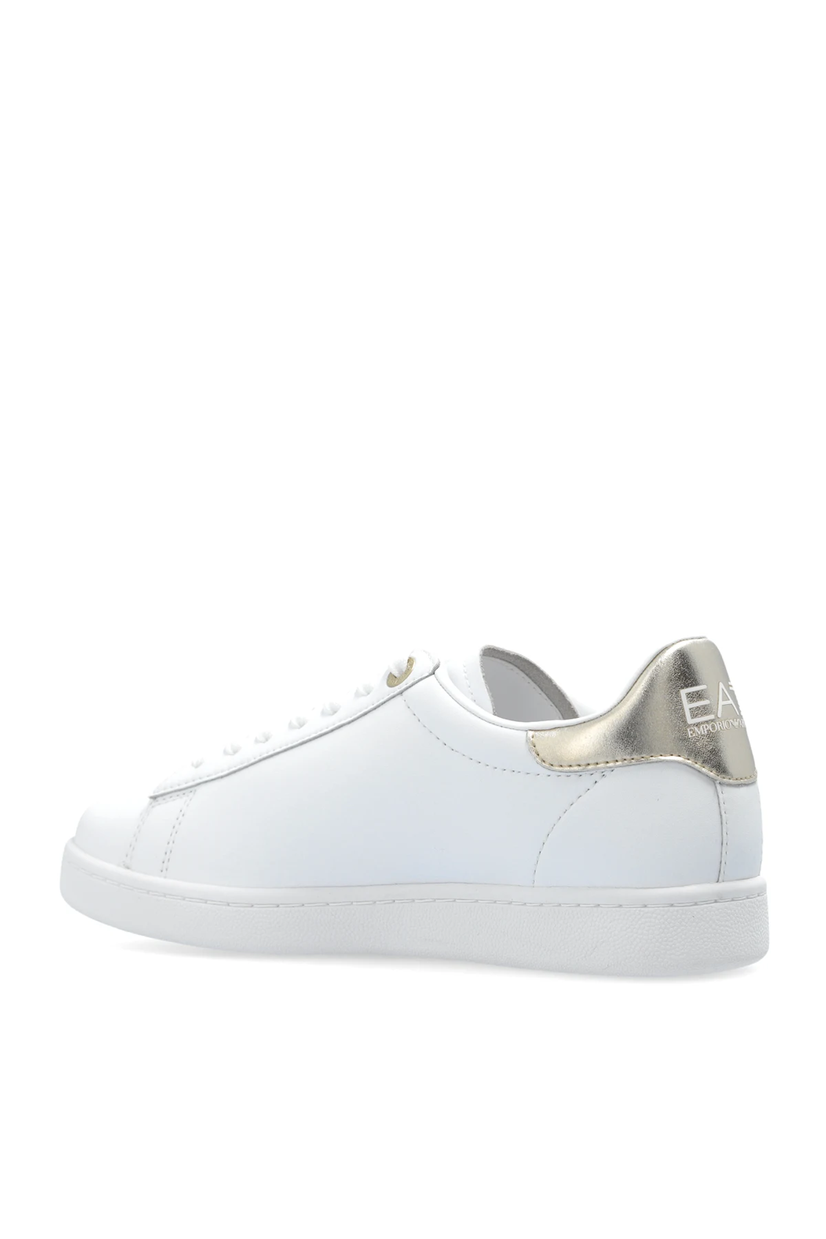 Entdecken Sie die Quintessenz urbanen Chics – wir präsentieren weiße Sportschuhe mit Logo des Designs von EA7 Emporio Armani. Dieses verfeinerte Schuhwerk vereint zeitlose Eleganz mit einem Hauch von lässigem Stil und fügt sich perfekt in die Strenge des alltäglichen Chic sowie in die Entspanntheit des Wochenendes ein. Das Obermaterial, gefertigt aus hochwertigem Leder oder dessen Imitation , strahlt in makellosem Weiß, während das geprägte Armani-Logo seine Herkunft dezent unterstreicht.