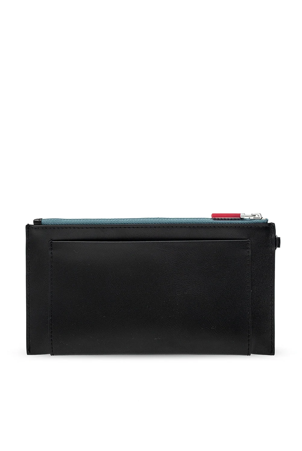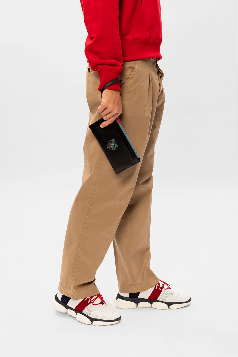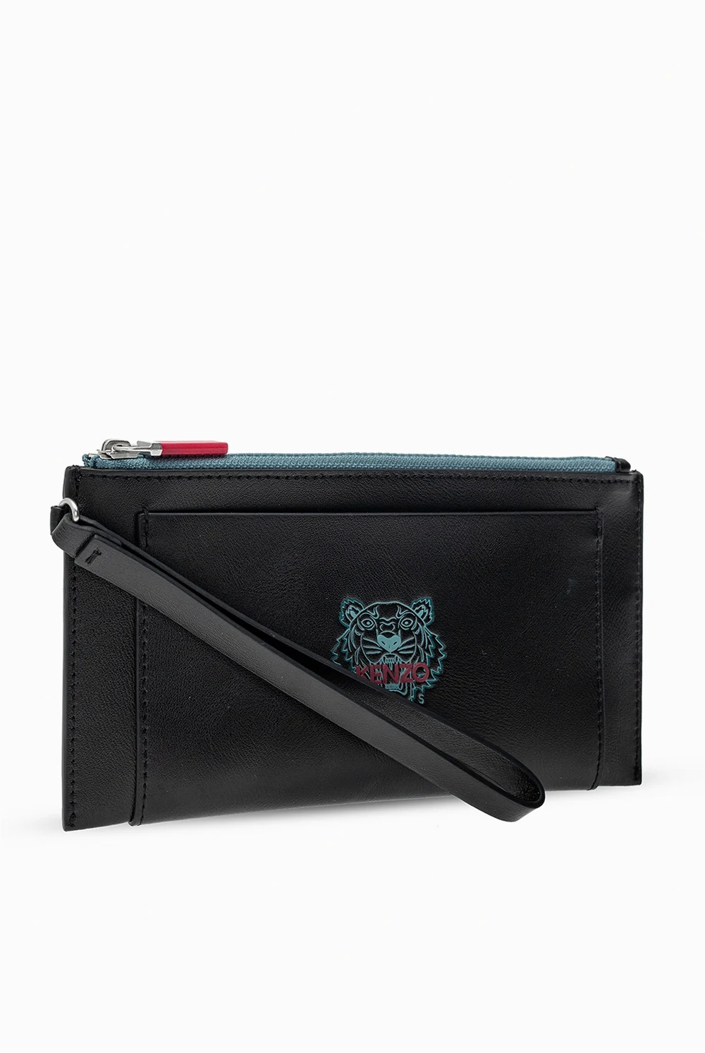 Black and blue wallet from Kenzo. Fastened with a zip, this item features the brand’s signature tiger head motif, a logo, slip pocket at front and back, a wrist strap and one internal compartment with three card slots.