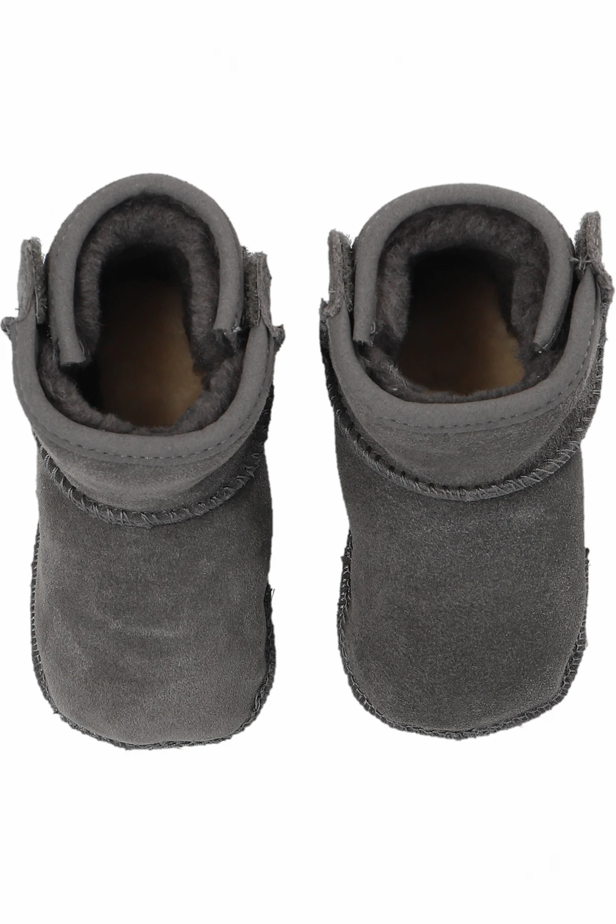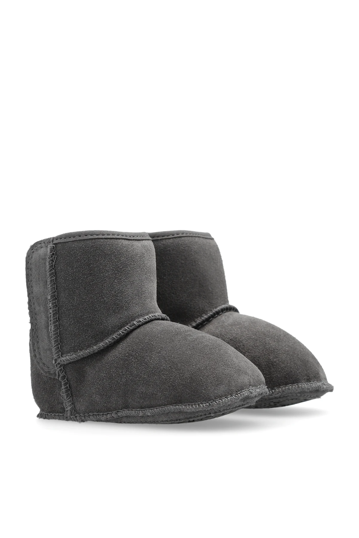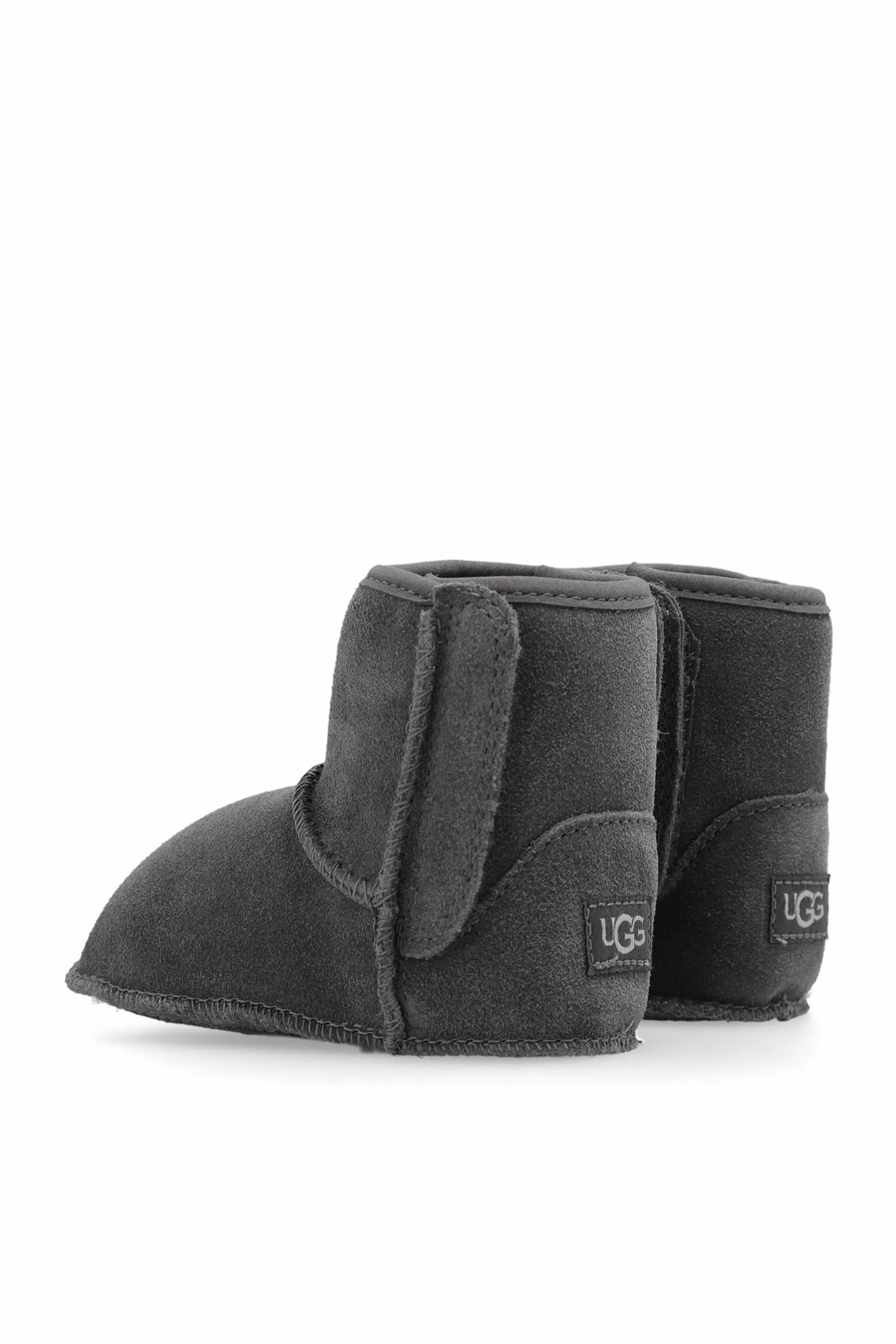 Dark grey ‘I Baby Classic’ snow boots from UGG Kids. Made of suede, this pair features velcro on the sides, logo patch, UGGplush™ lining made from wool and recycled materials as well as a dark grey rubber-trimmed suede sole.