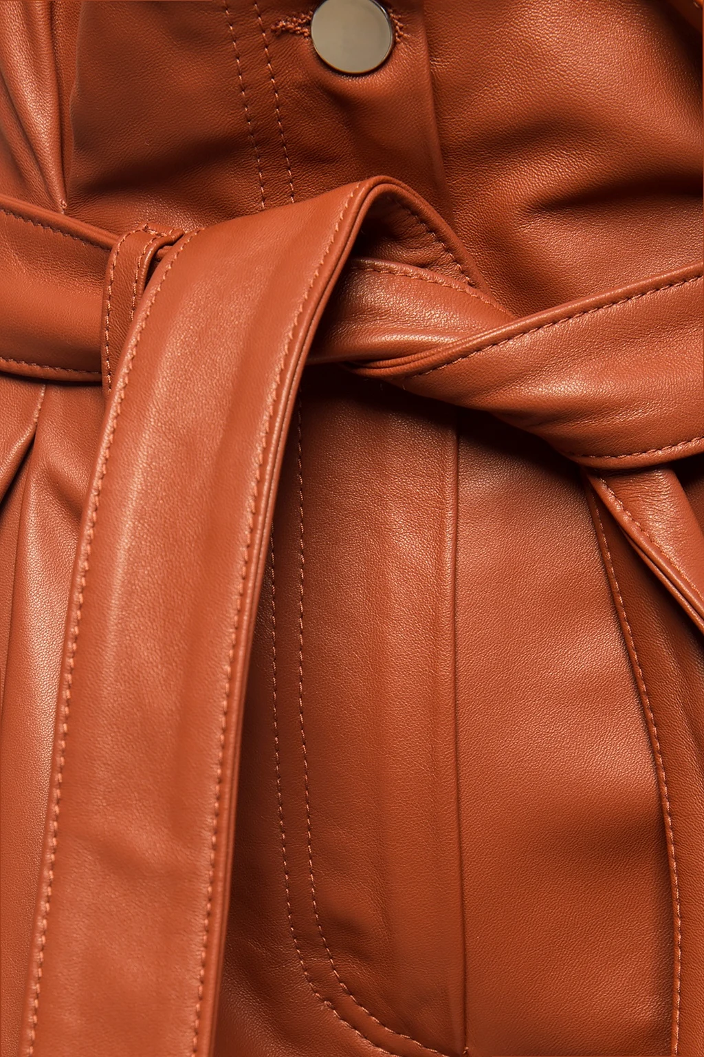 Brown high-waisted shorts from The Attico. Made of lamb leather. Zip, button and tie fastening. Two slip pockets on the front. Decorated with darts.