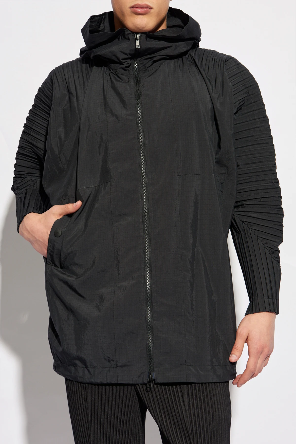 Wir präsentieren Ihnen die leichte Kapuzenjacke vom renommierten Designer Issey Miyake Homme Plisse . Diese außergewöhnliche Kreation vereint Eleganz mit Funktionalität und wird somit zu einem unverzichtbaren Element in der Garderobe jedes Mannes, der Stil und Komfort schätzt.