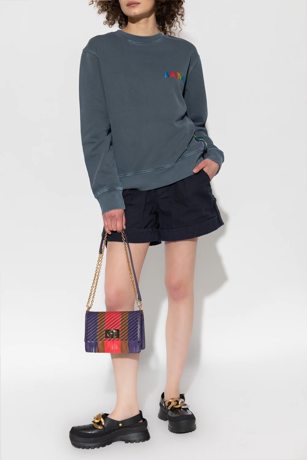 Grey ‘Simba’ sweatshirt from Zadig & Voltaire. Crafted from cotton, this style showcases a colourful Amour print, colourful lurex tapes sewn on the sides and elasticized trims on the bottom hem and cuffs.