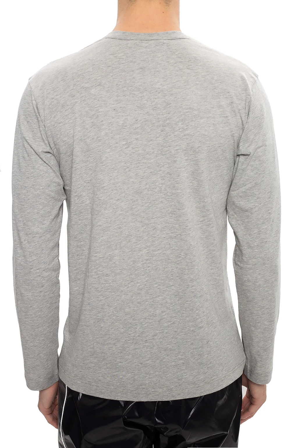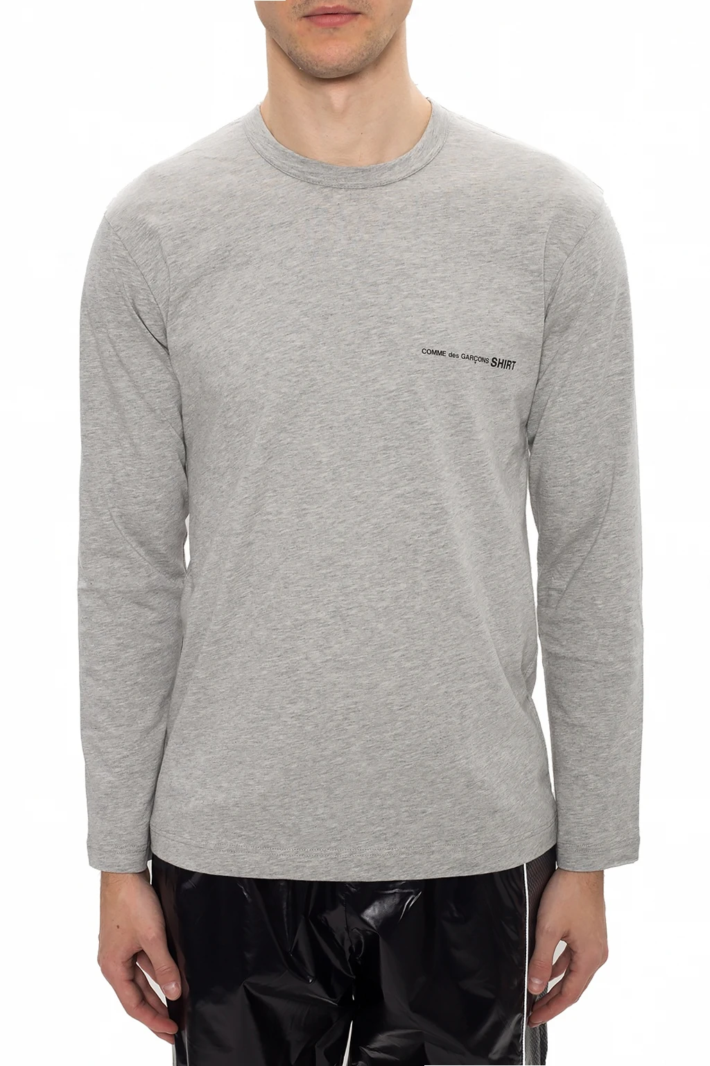 Grey long-sleeved crewneck T-shirt from Comme des Garçons. Made of cotton. Embellished with black graphic print with brand's logo.