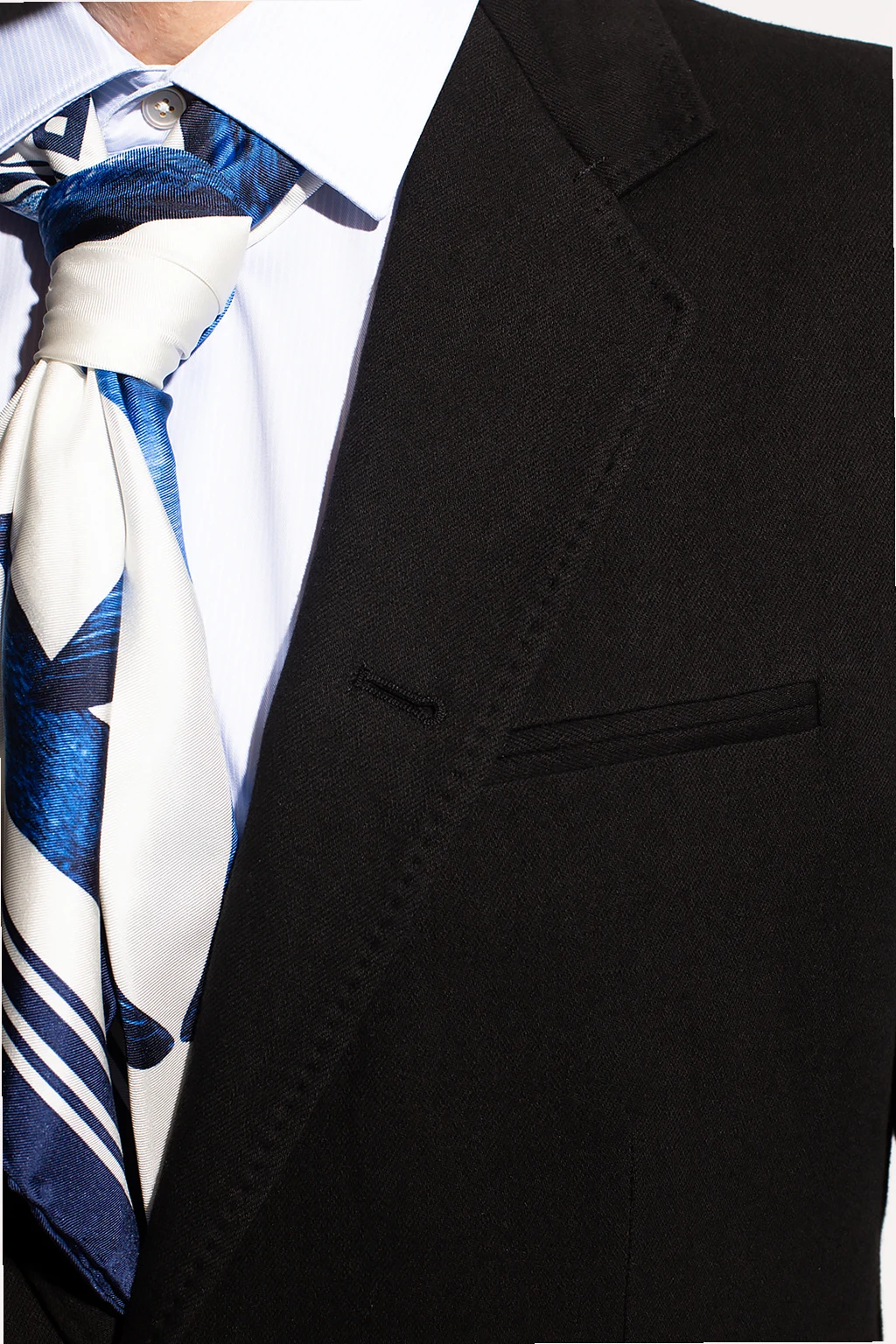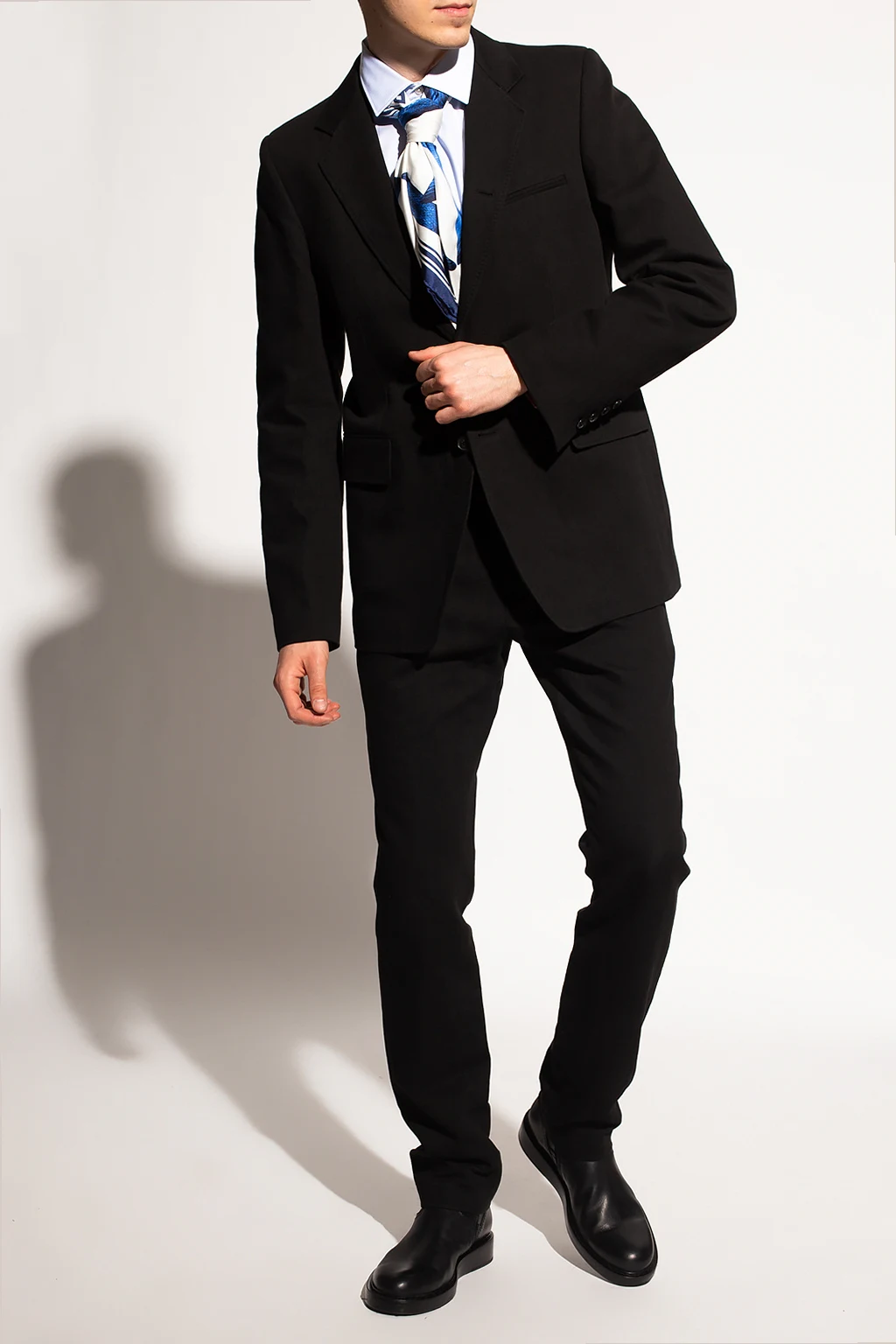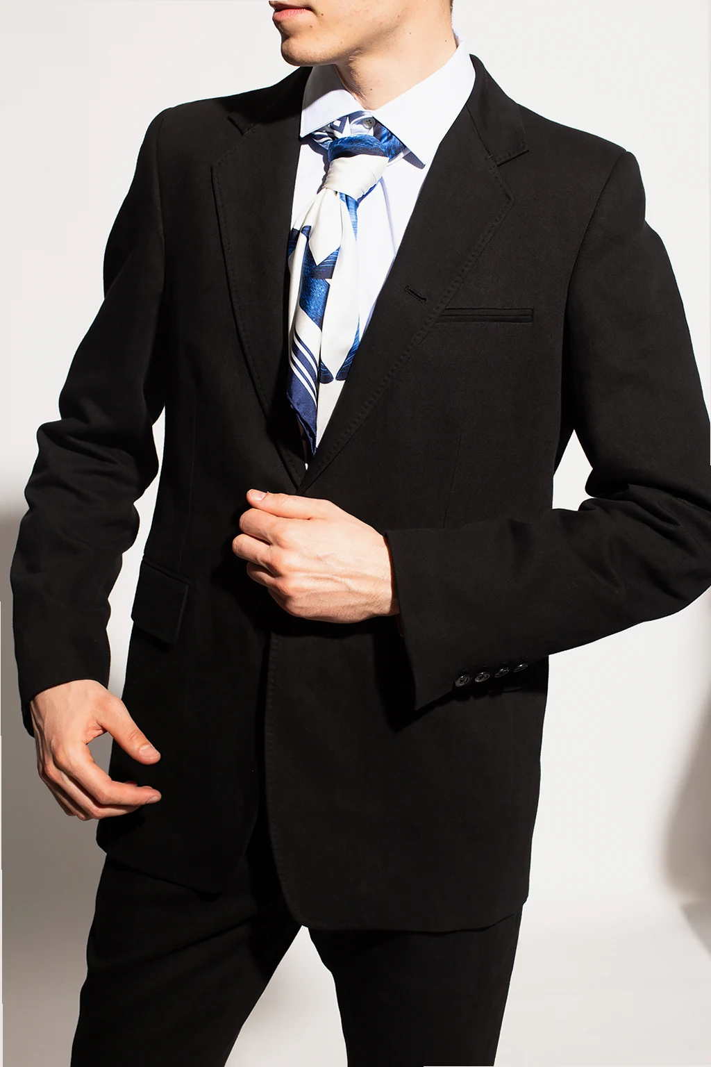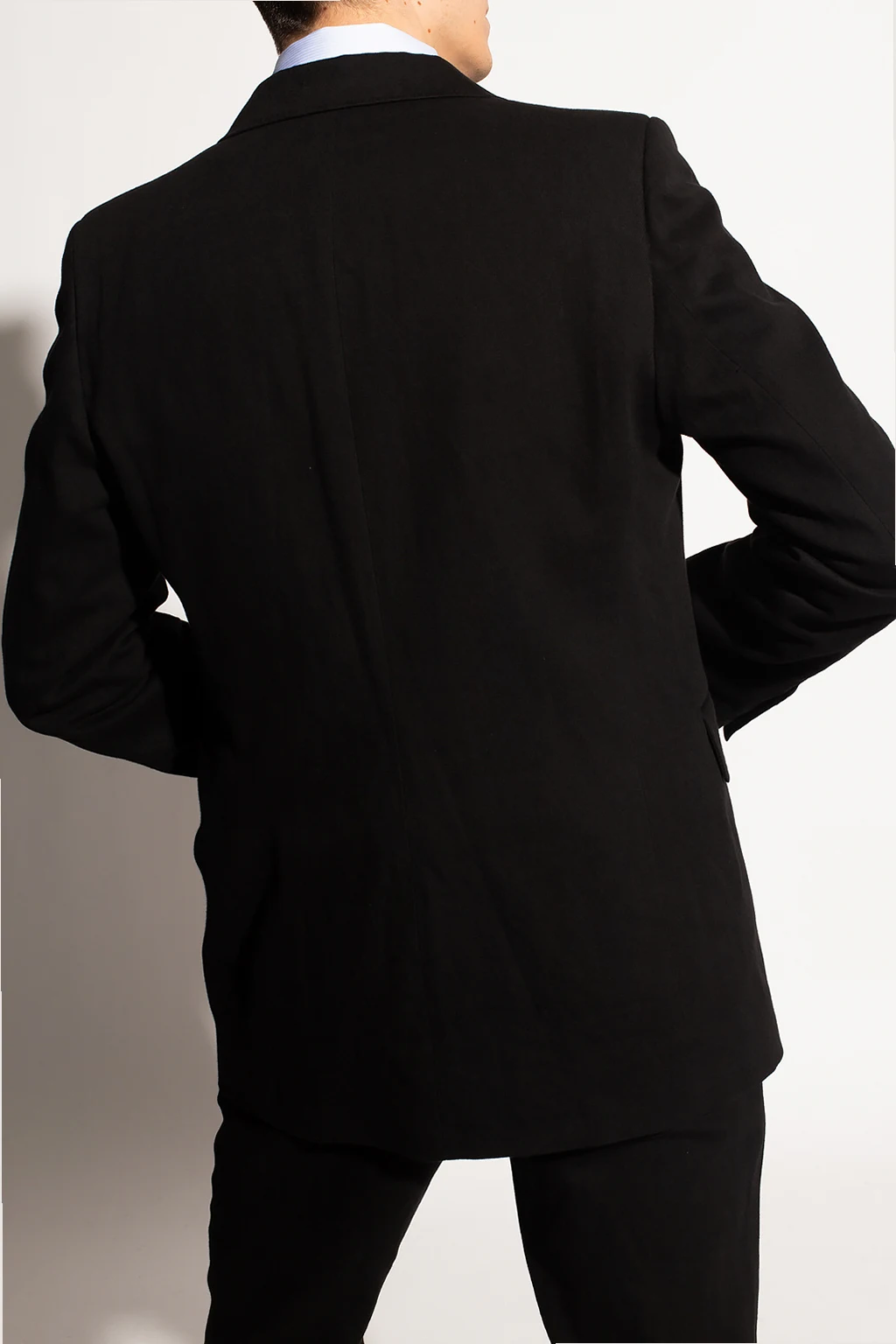 Black blazer with notch lapels from Ann Demeulemeester. Crafted from a cotton and linen blend, this design features button fastenings, one slip pocket, two flap pockets and a double rear vent.