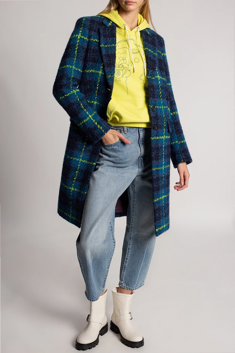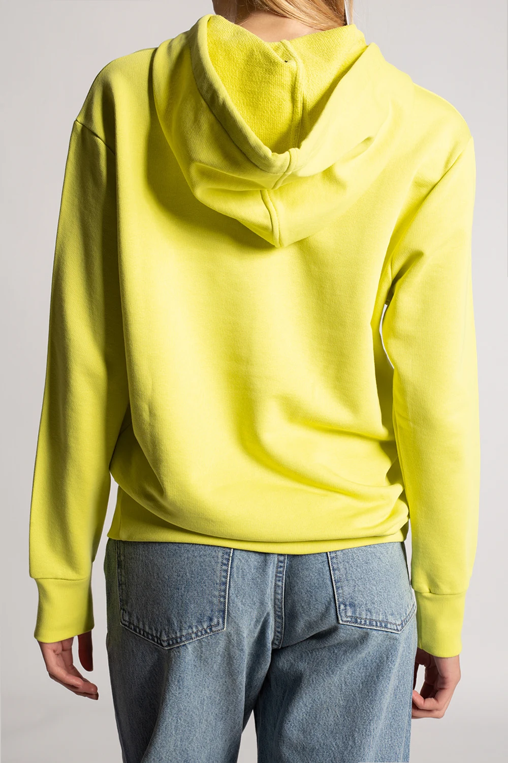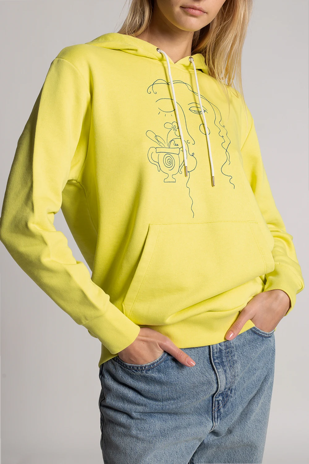 Yellow and green sweatshirt with a drawcord-adjustable hood from PS Paul Smith. Crafted from organic cotton, this hoodie showcases a navy blue graphic print with the brand's logo, a kangaroo pocket and ribbed trims.