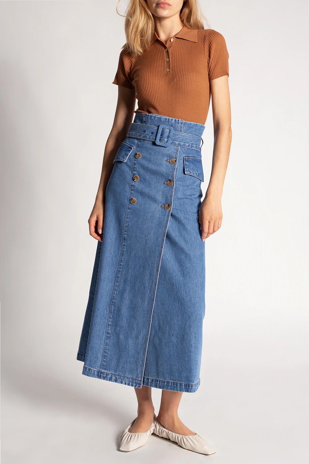 Brown polo from Nanushka. Crafted from wool with ribbed detailing, this style features a collar with a button placket, short sleeves and an embroidered logo on the front.